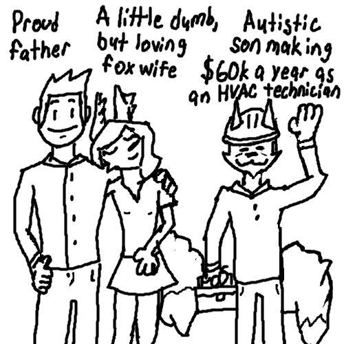 >>81203471my chud fur son who will claim getting an anthro gf is still /hmofa/ because his dad is a human