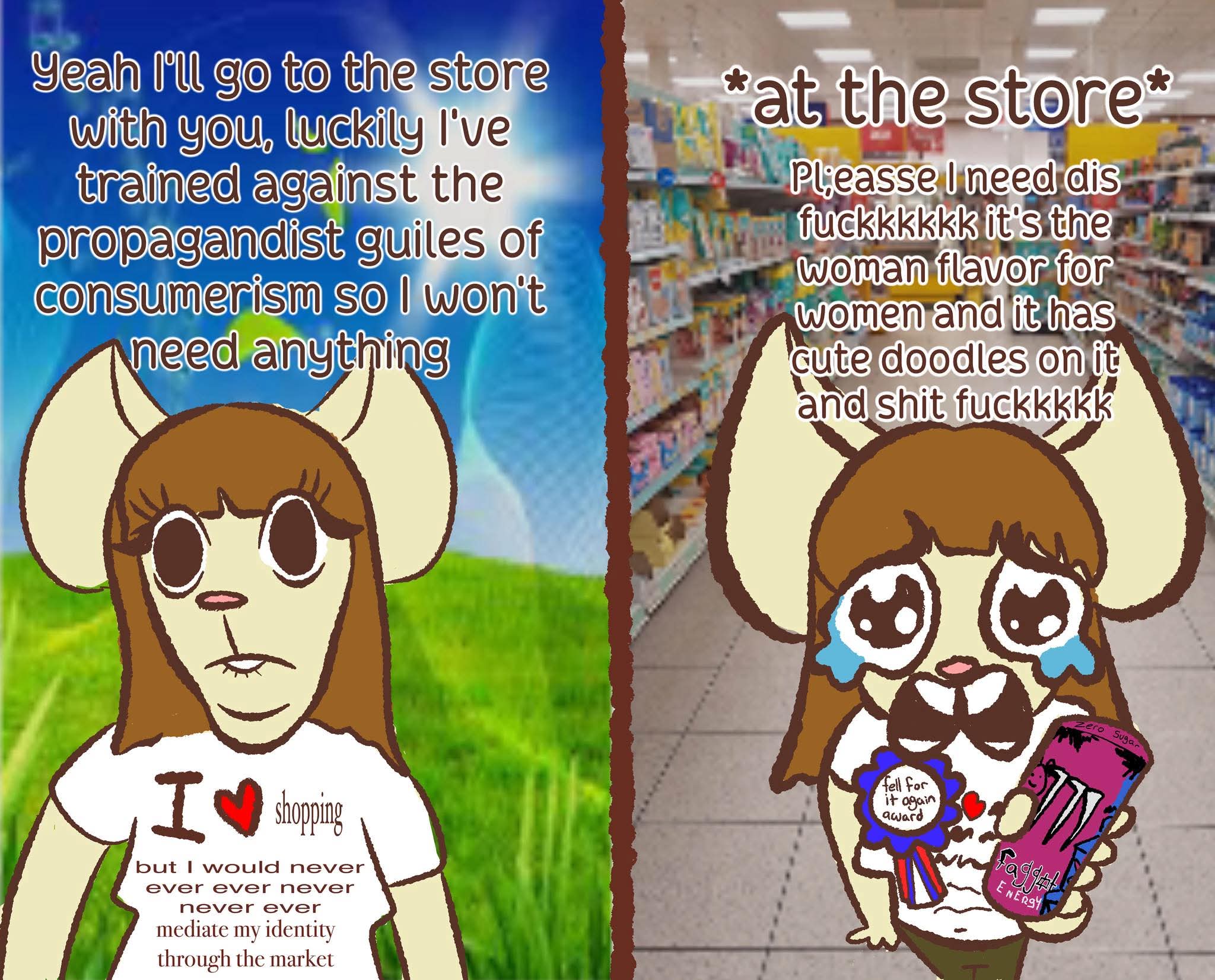 don't like this artist's obnoxious habit of sticking political crap with vintage looking character designs but i do like some of their work. i think blending old advertising with waifurs is a great idea from a style standpoint