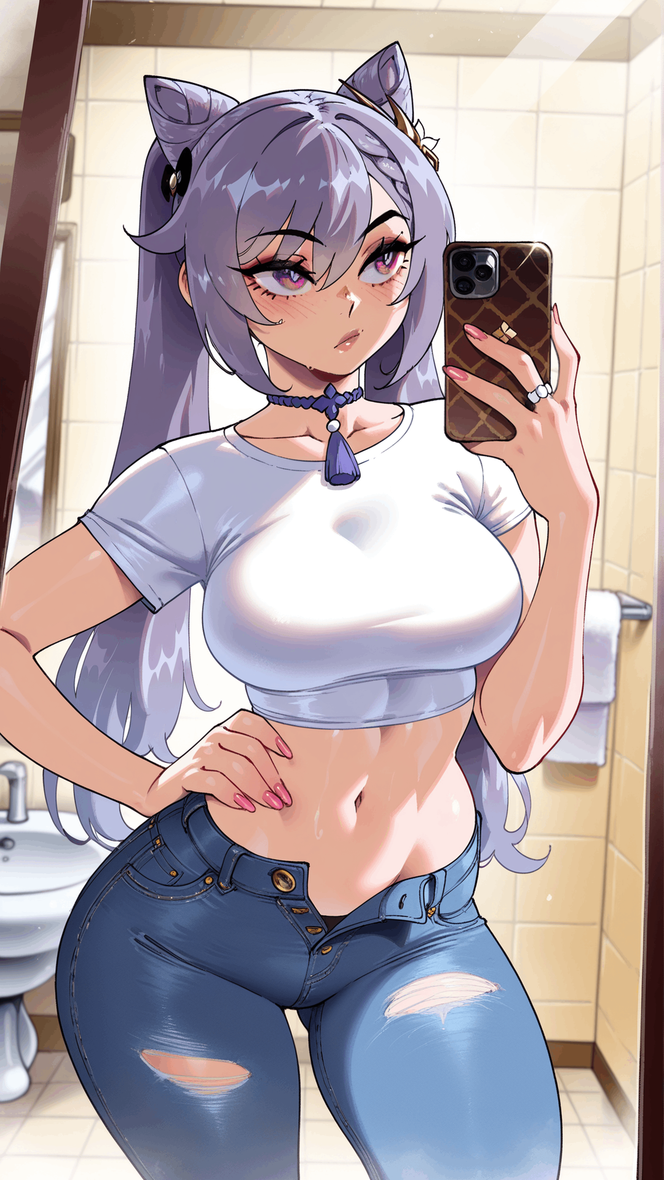 >>81305530Keqing from Genshin taking a selfie like this please
