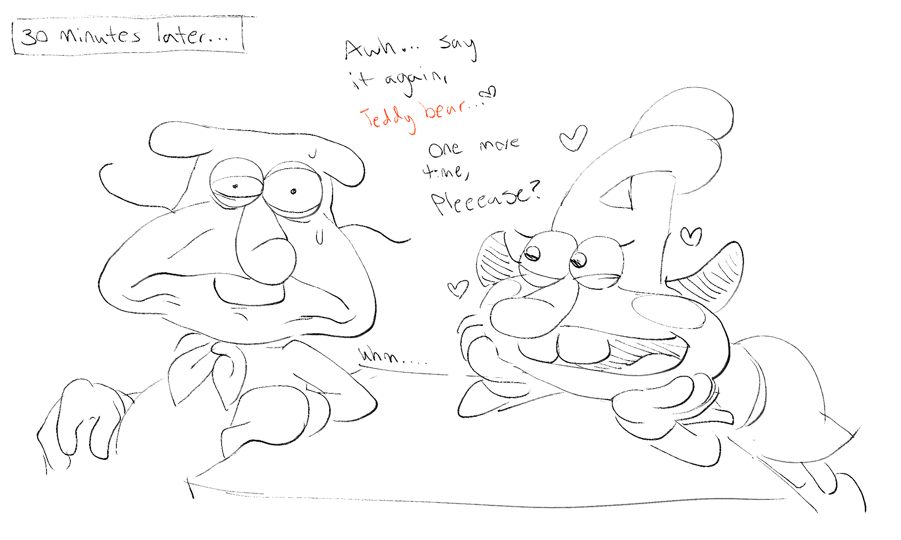 >>81482881Adorable, I like how you invoked their original concept art for BYOC with the flat colors and unsteady linework.