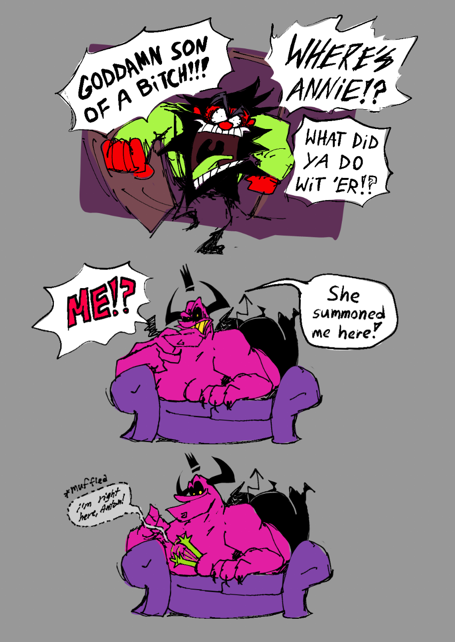 >>81374623>Annie being smothered by Satan's titsI wish I was both Annie and Satan in this situation.