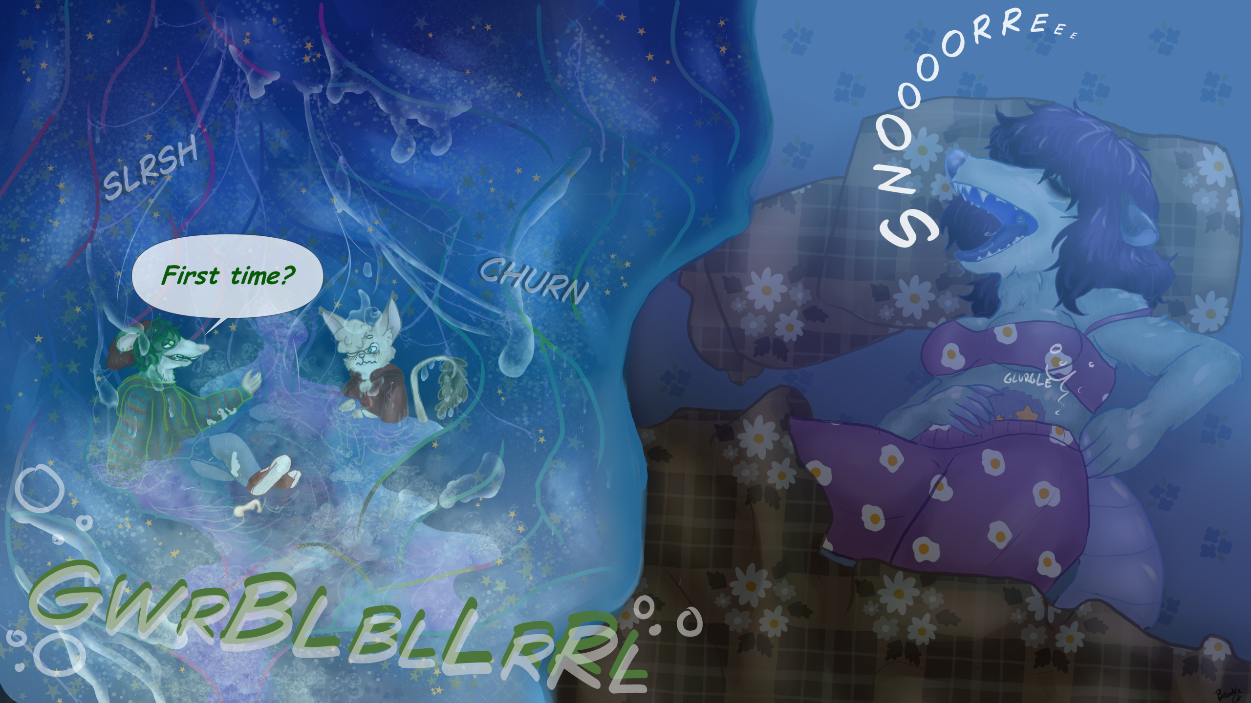 Bowel Bed>Cupped snug and wrapped in squishy flesh. Soft pressing and idly squeezing around your form. >There's not an inch of you not soothingly smothered, feeling it do bodily against you.>The rolling squish of his bowels holds you in a resting embrace, idly curling and massaging you over in place.>Time is lost inside him. Tucked in for the night, waking up in your squeezing sleeping bag at some point. >Your feet are smooshed lightly against the way you came in, feeling that relaxed and resting sphincter idly pinch along your soles. >Your knees are lightly bent in his silky rectum, waist plugged in the junction to get there, and your upper half massaged in his bowels.>It could be morning for all you know in the darkness of his body. >You're well rested if that's anything to go by, but a place like this does the trick even for a short nap.>In any case, he's asleep. >A peaceful slumber while you listen in the dark. >His resting breaths soothingly rush in and out, heard a distance away. >There's his pulse too. >You can feel that in the walls and listen to that reverberating thump. >Slow and steady, heavy with a tinge of idle happiness you can tell. >The sign of sweet dreams in his rest, certainly from unconsciously knowing where you are. >Telling even further when you subconsciously shift as the walls squeeze snug, sliding your face against the rubbing flesh. >It makes his pulse thump slightly more. >His flesh heats up around you and a snoozy little moan slides out of his chest.>His body relaxes more with a little shift to his position. >The walls scrunch and your feet smoosh more against his rectal walls.>You're tilted a little more, likely bringing his leg up to better embrace the pillow between his legs.>There's a rushing sigh the blows from his lungs, and his pulse soothes into that steady rhythm. https://www.furaffinity.net/view/63317073/