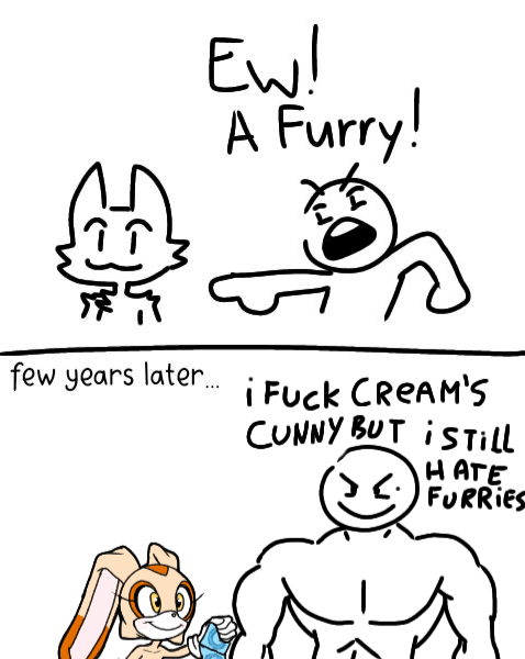 HaaaaaAAAAAAA! Activate, my super powers!>every single pedophile is obliterated from existenceI... I did it... This should make the world a better and safer place for everyone!Sega: Why isn't our Cream merch selling anymore?