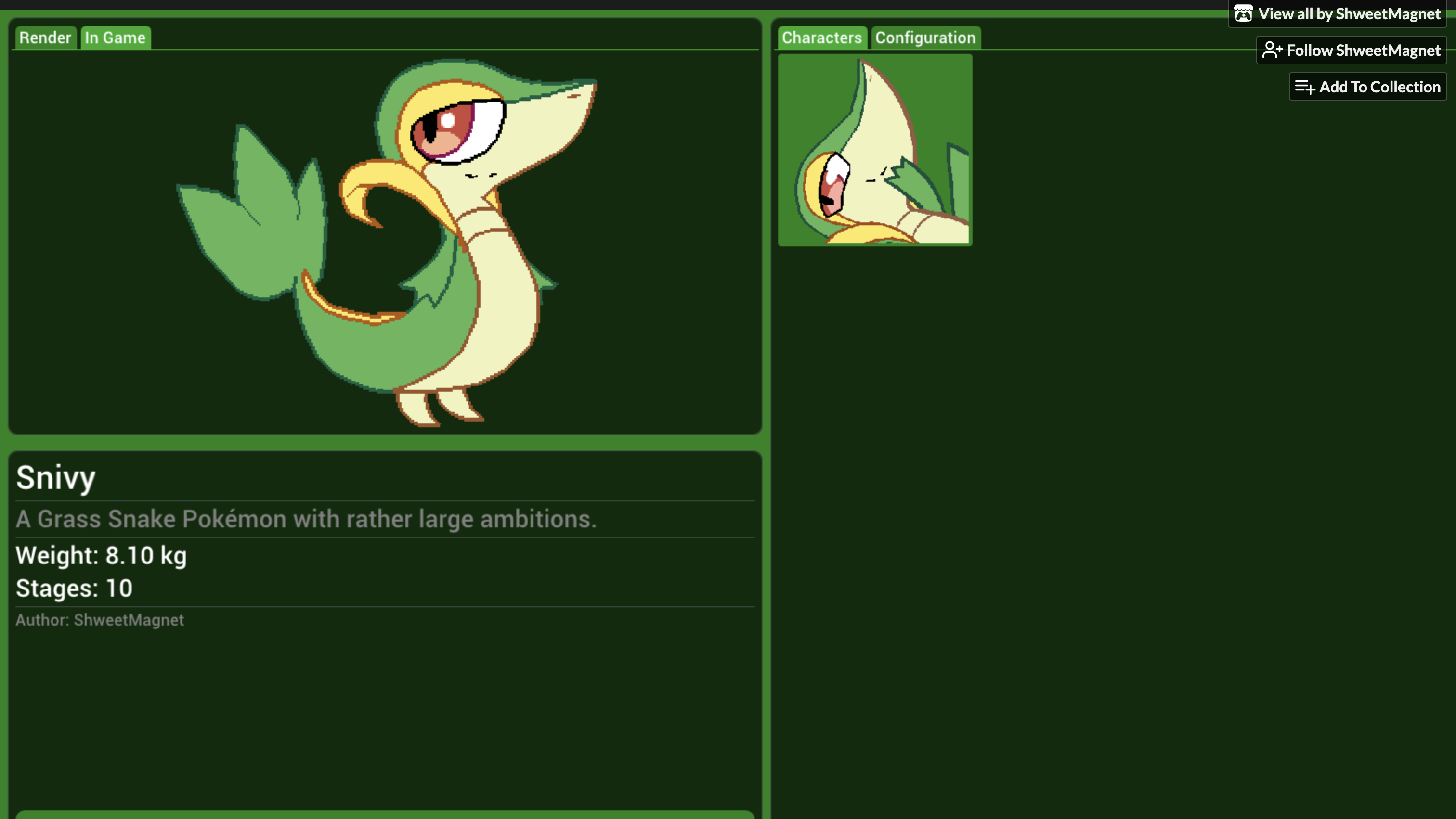 >>81457972The game is all set up for custom character support, it's just a matter of actually doing it. It's a tiny bit inflexible in areas but you can easily get a similar experience.I'm currently writing documentation for that now to help people out.(and if anyone wants to commission custom characters, Pokemon or otherwise, feel free to let me know :^) )