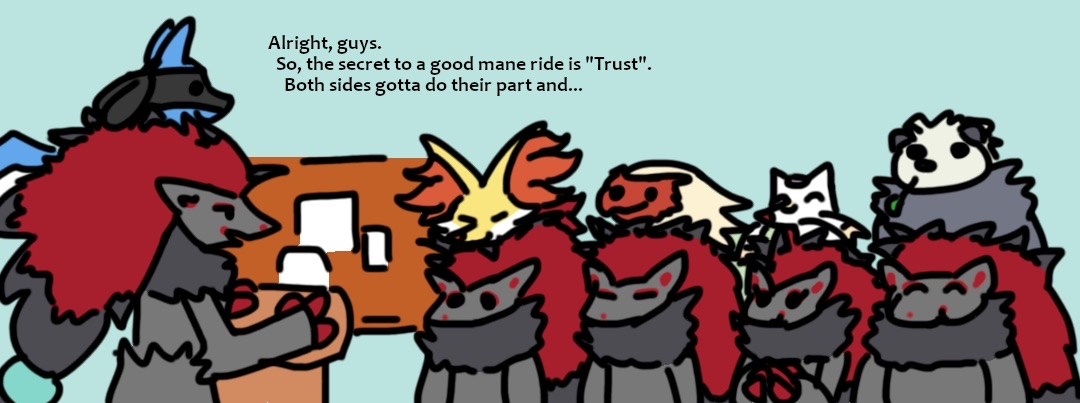 >Zed turned around and lowered his mane for the smaller fox to jump in