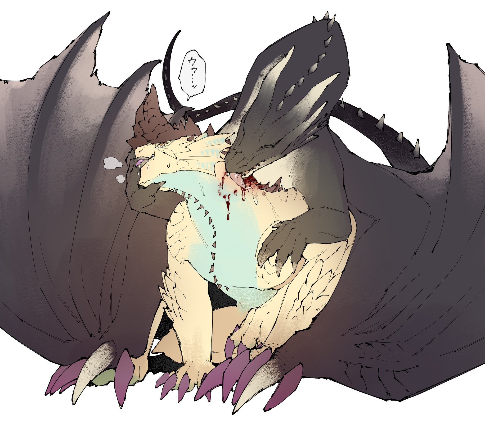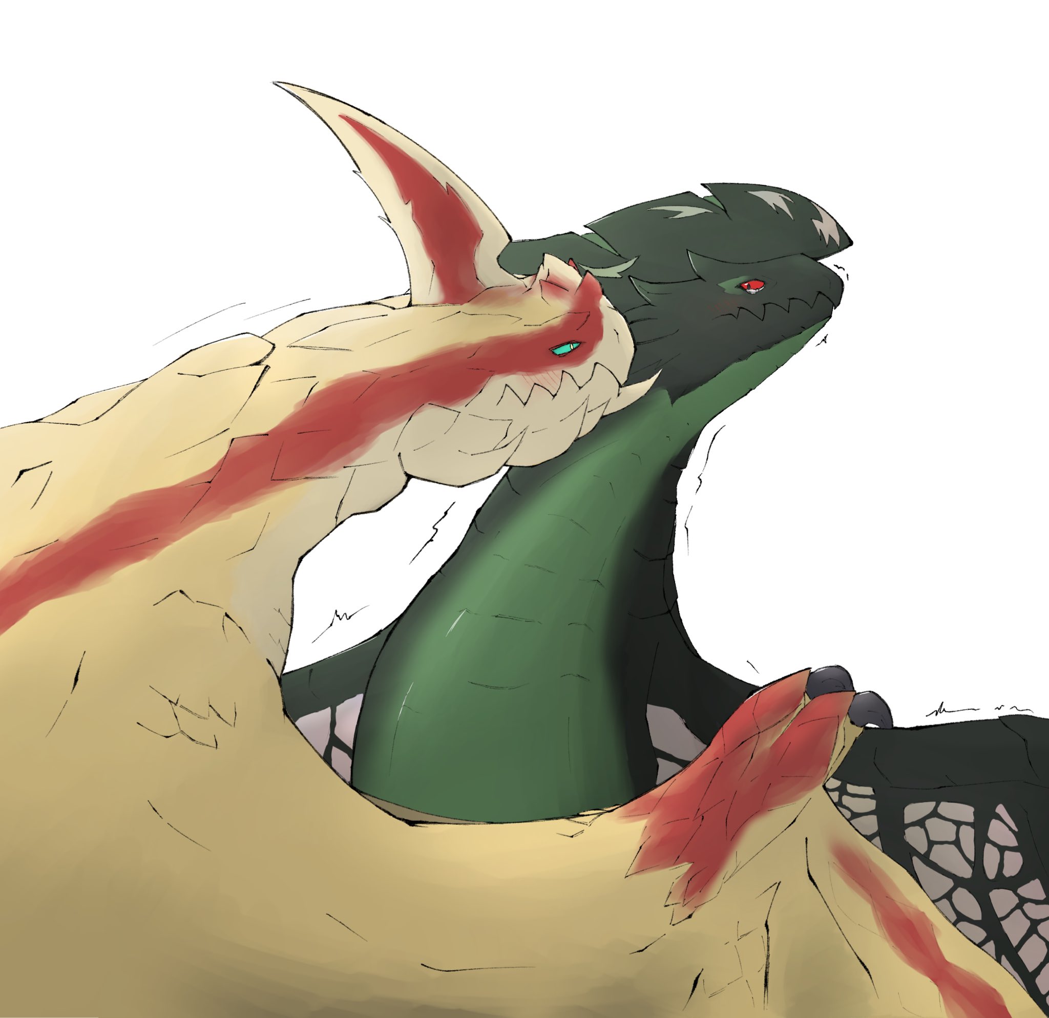 Nergigante eats elder dragons, so he tried to eat himself when he found out he's an elder dragon too... but biting himself hurt him