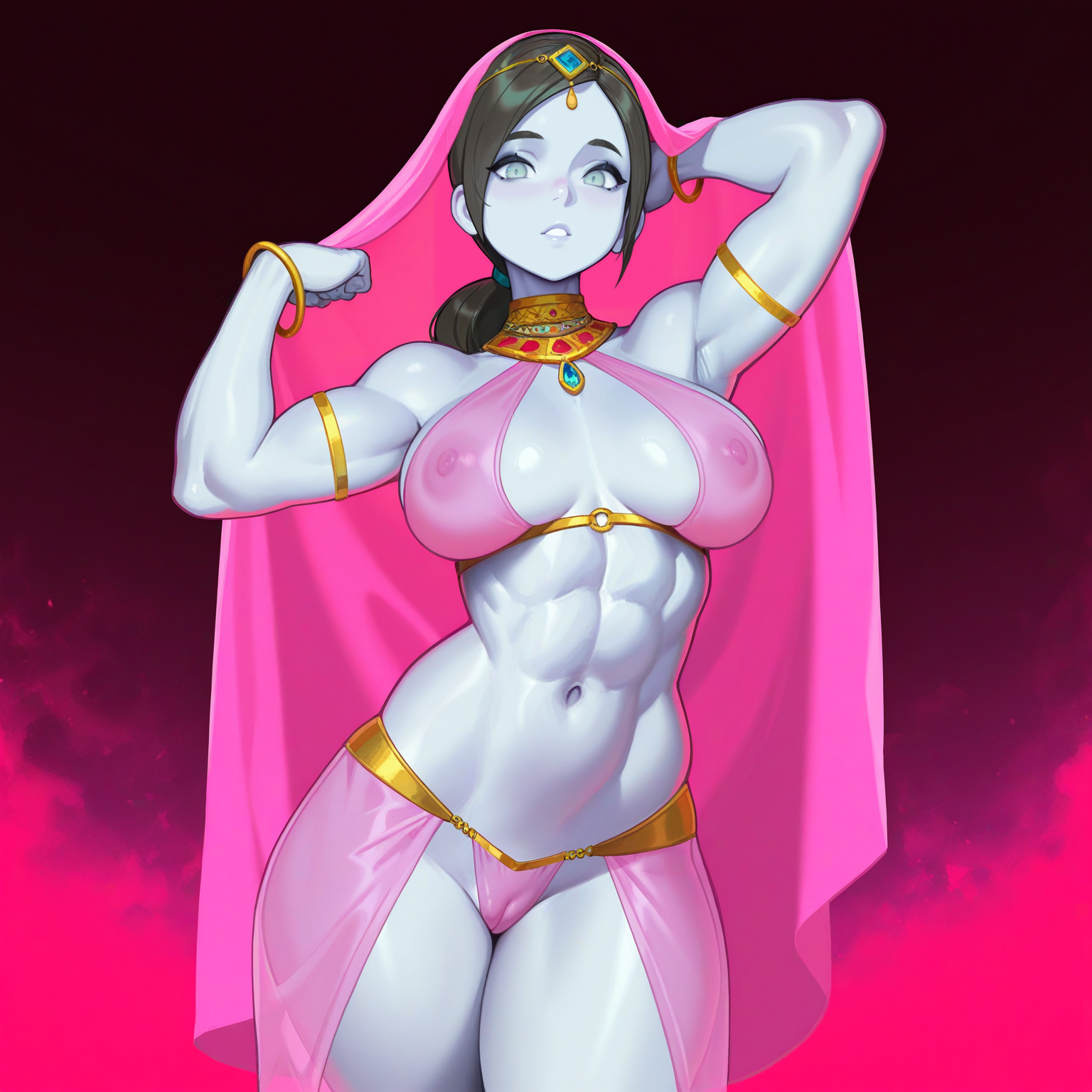 >>81472516Different anon but can I pls get the same with an androgynous, small-titted Rika in green or black sheer Arab dress?