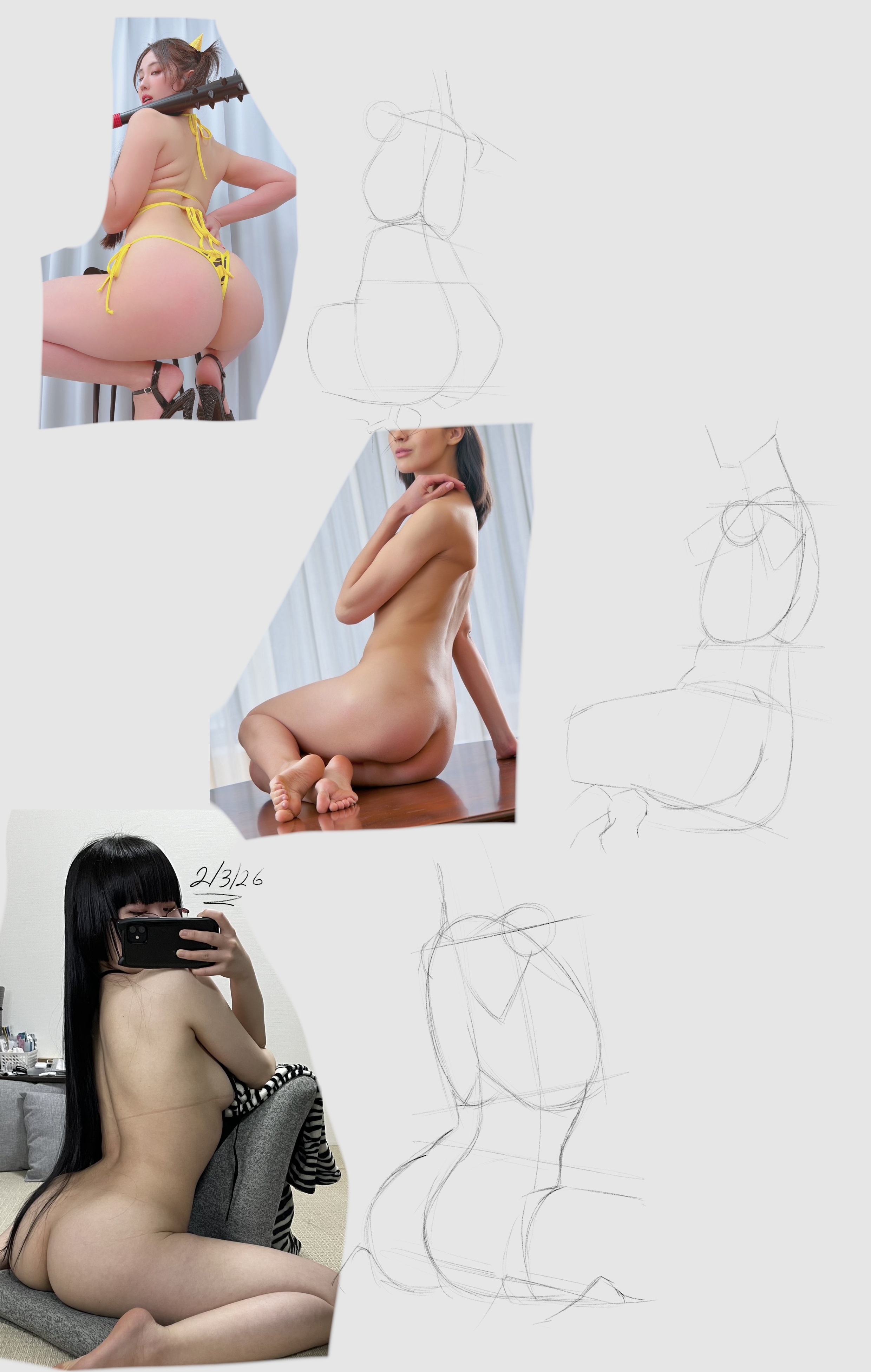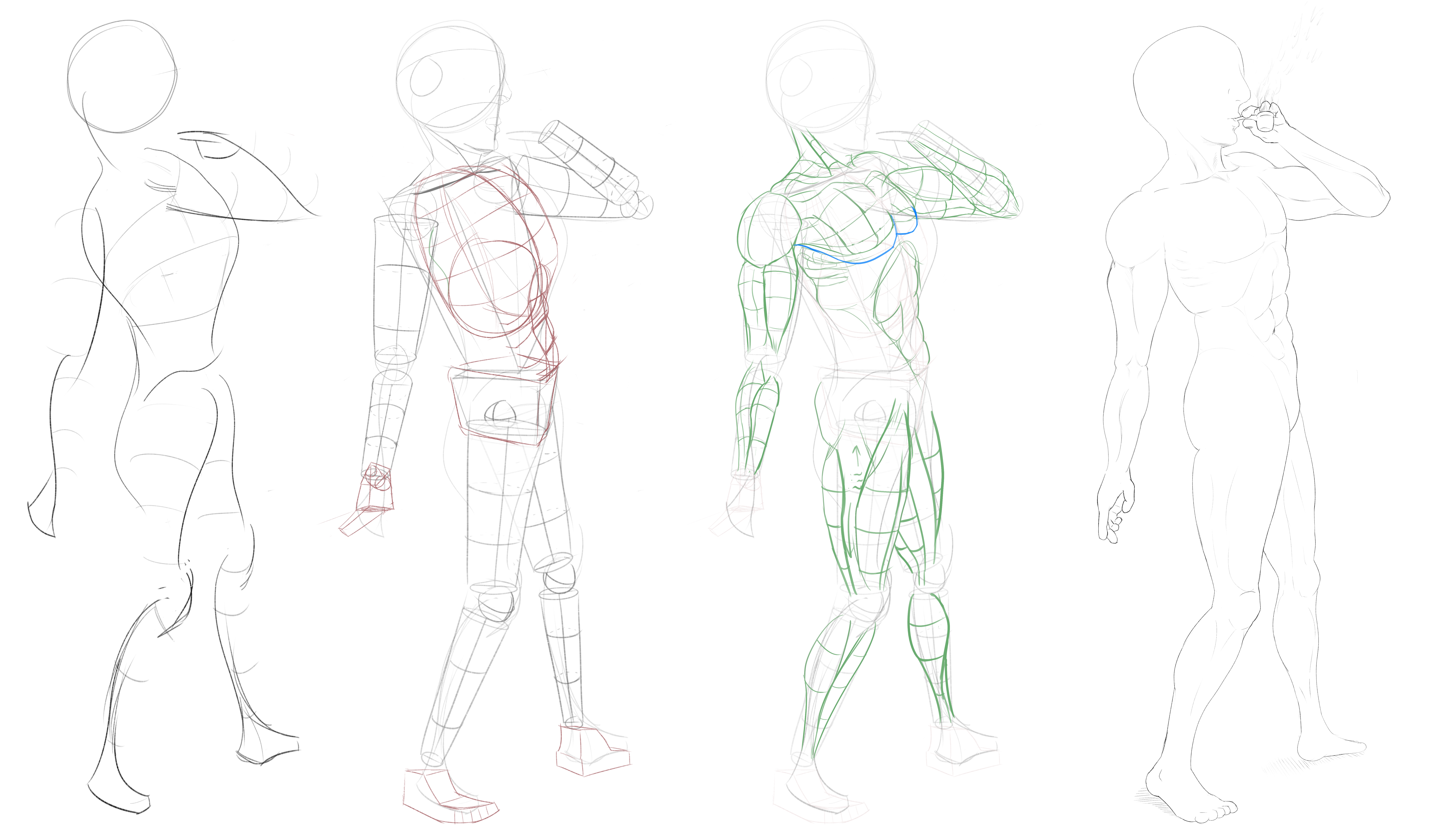 Starting to move away from trying to use boxes to draw the torso and pelvis and I've focused more on just using the shoulders and pelvic bone land makes to figure out where to draw the ribcages.