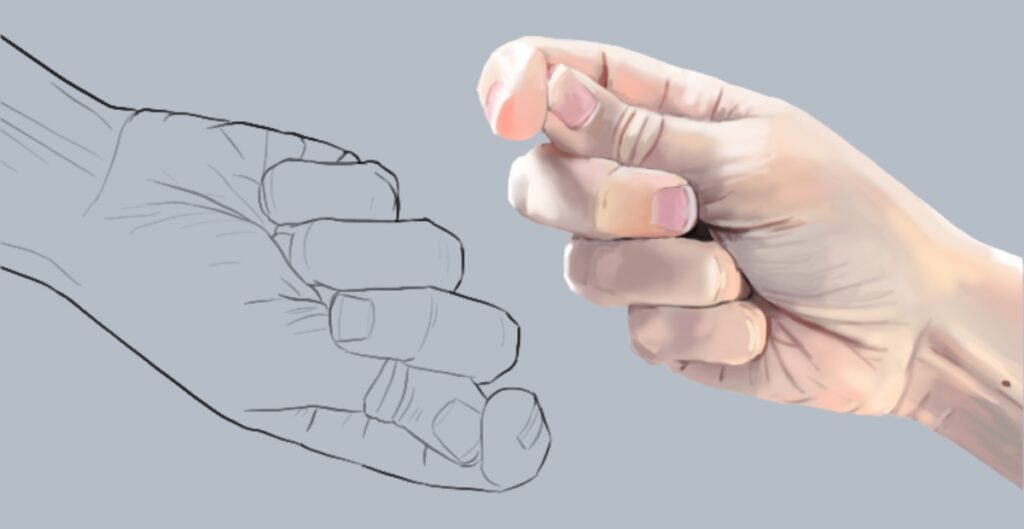 God they're so pretty>>81468650Thank you for the info at any rate, anon. Last thread died before I could replyI've done more studying and have realized you're totally right; when pressed flat to the side of the hand, the thumb should be about right in the middle of the proximal phalange of the index finger (that's apparently the part between the base of the finger and the middle of it.) I was drawing thumbs as being able to reach the bottom of the proximal phalange, rather than the middle. Some study has also reminded me that most of the bones of the fingers are at the top of the finger, with muscle and fat tissue on the underside; if you put your hand palm-down on a table and touch the back of your fingers, you'll feel a layer of skin and then bone, but if you put your hand palm-up and touch your finger, you'll feel a lot more tissue before you start pushing into the bone. This means there should be folds around the joints of the finger even if they are fully extended.