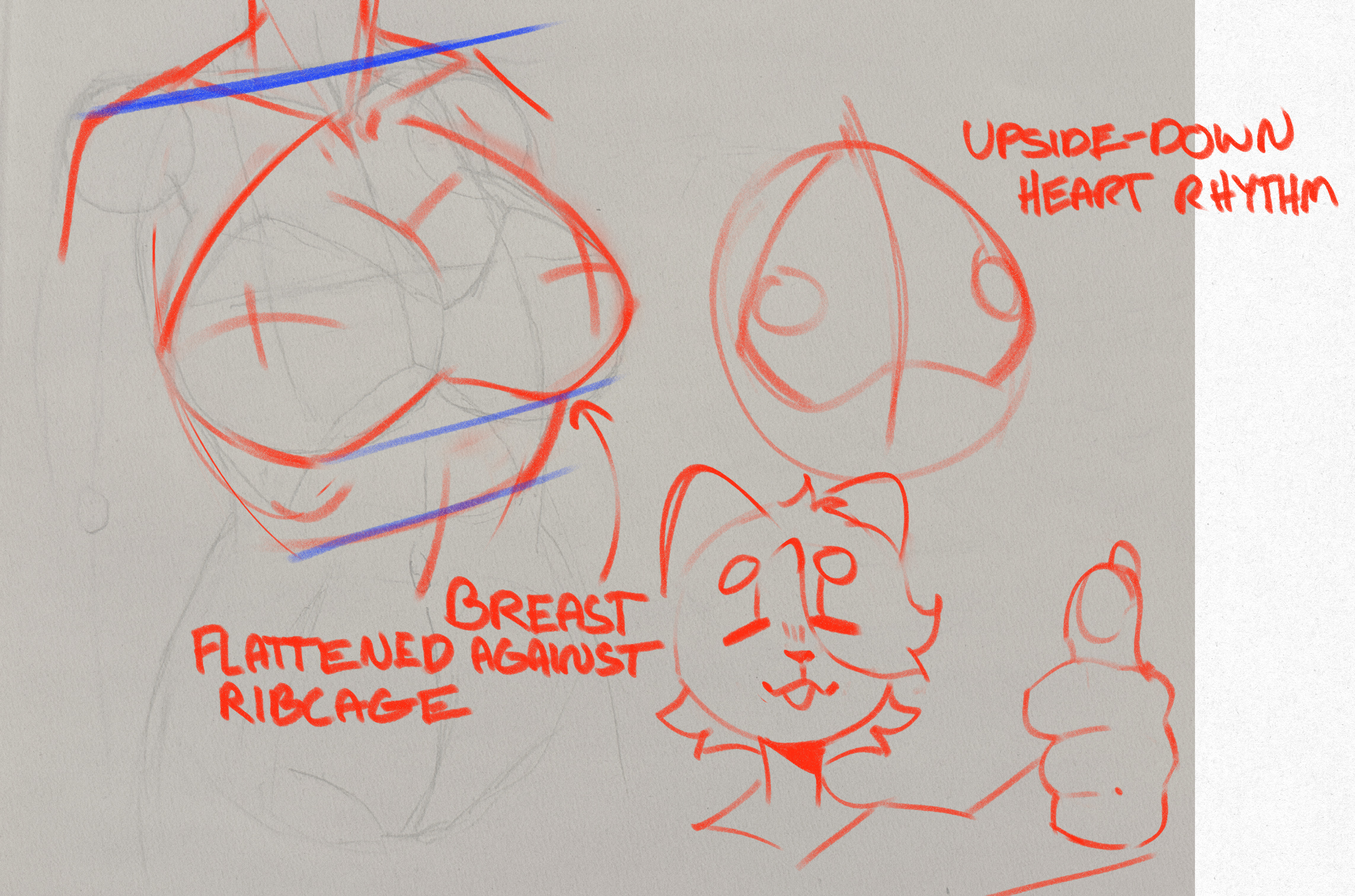 >>81518052I mean you're pretty much there. You could extend the the left (camera's right) shoulder a tiny bit out. Remember a heart rhythm when drawing breasts gesturally. The perspective on the bottom of the breasts is a little too flat and the left (camera's right) breast could be raised a bit to match the perspective of the ribcage. gl