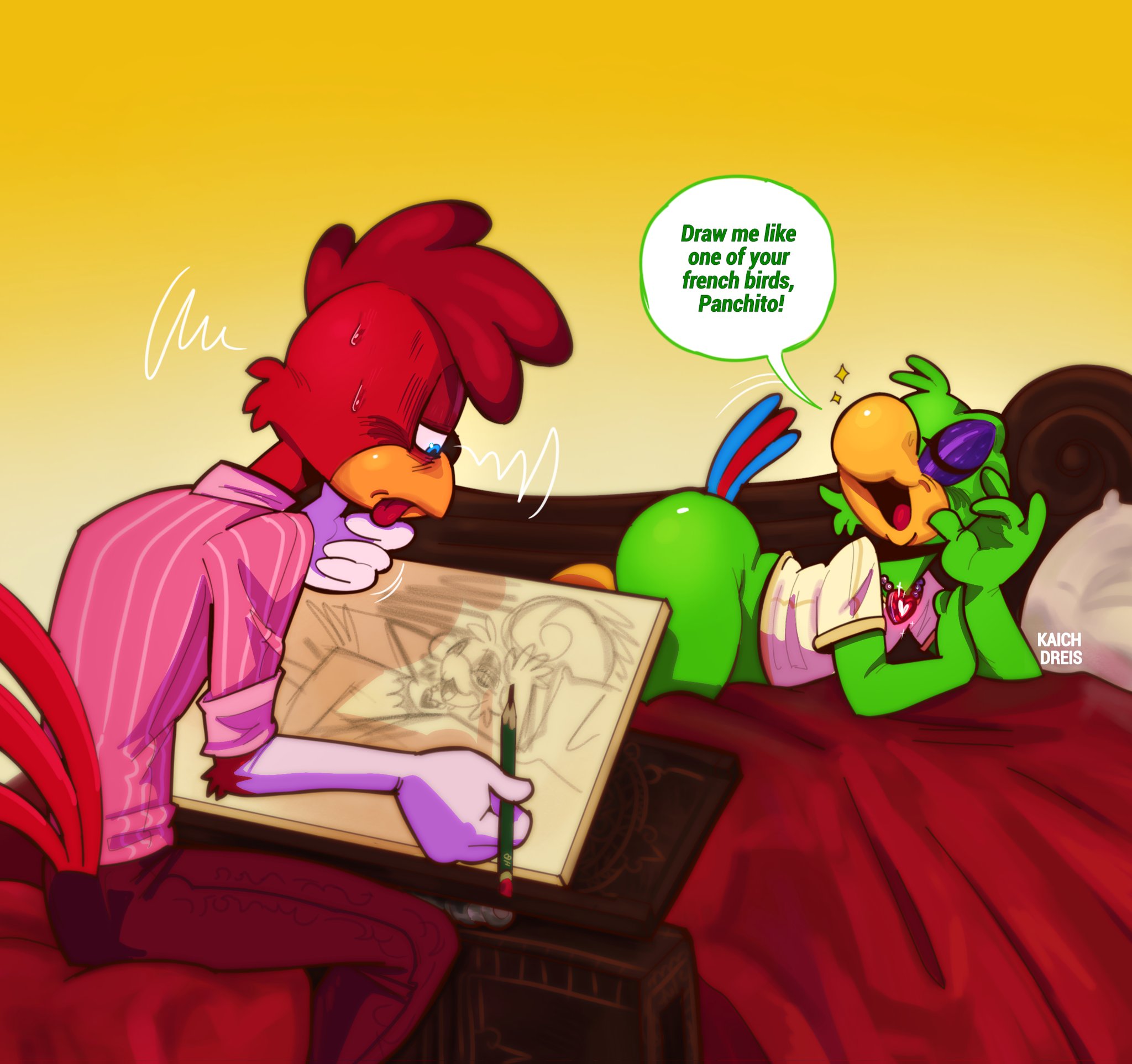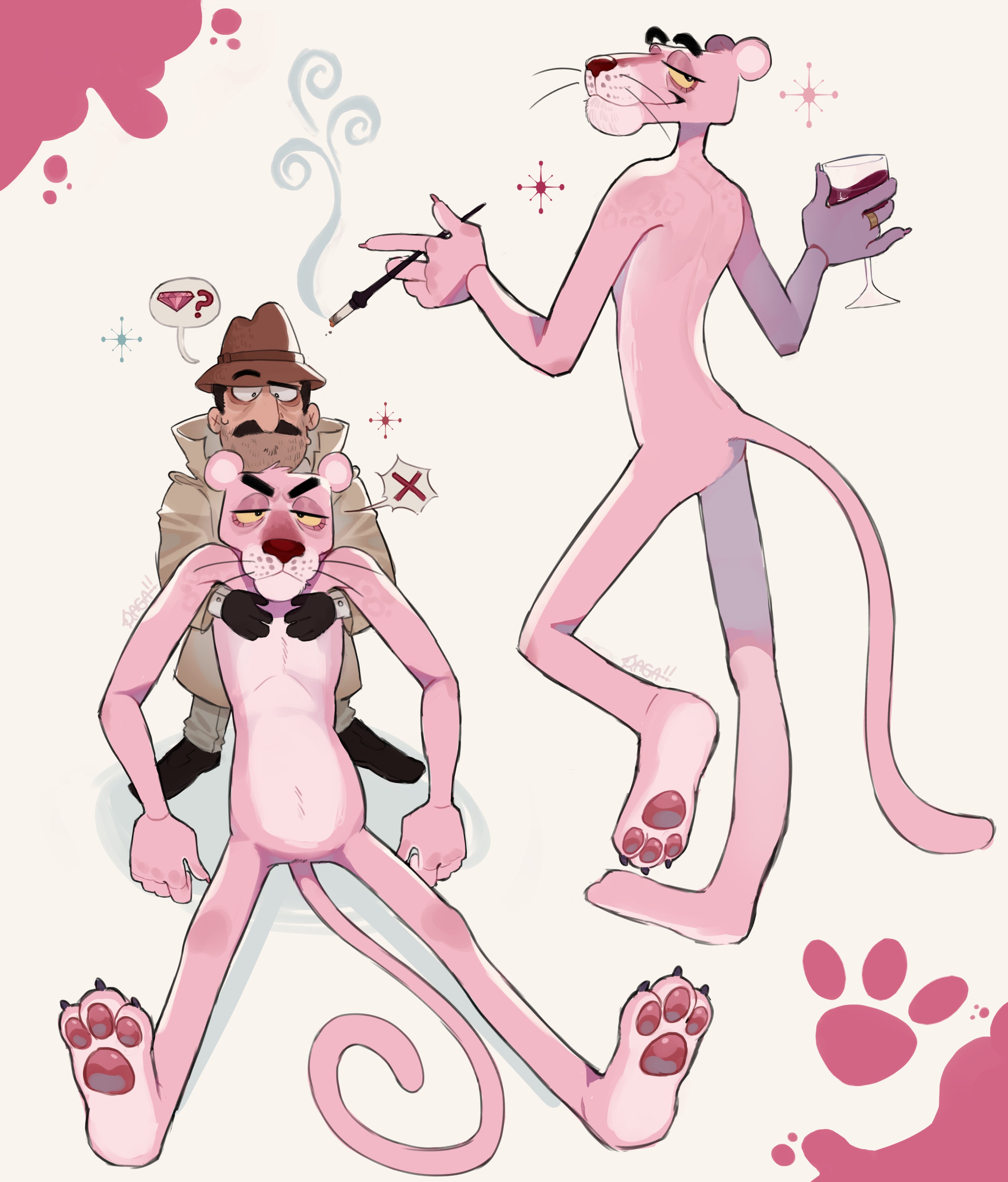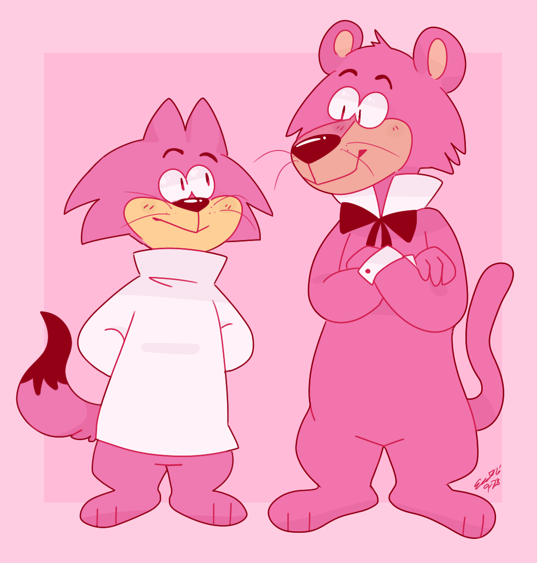 Dreamtdebris on twitter, though the Pink Panther one is from their alt Loveypuddy. They got a cute artstyle.