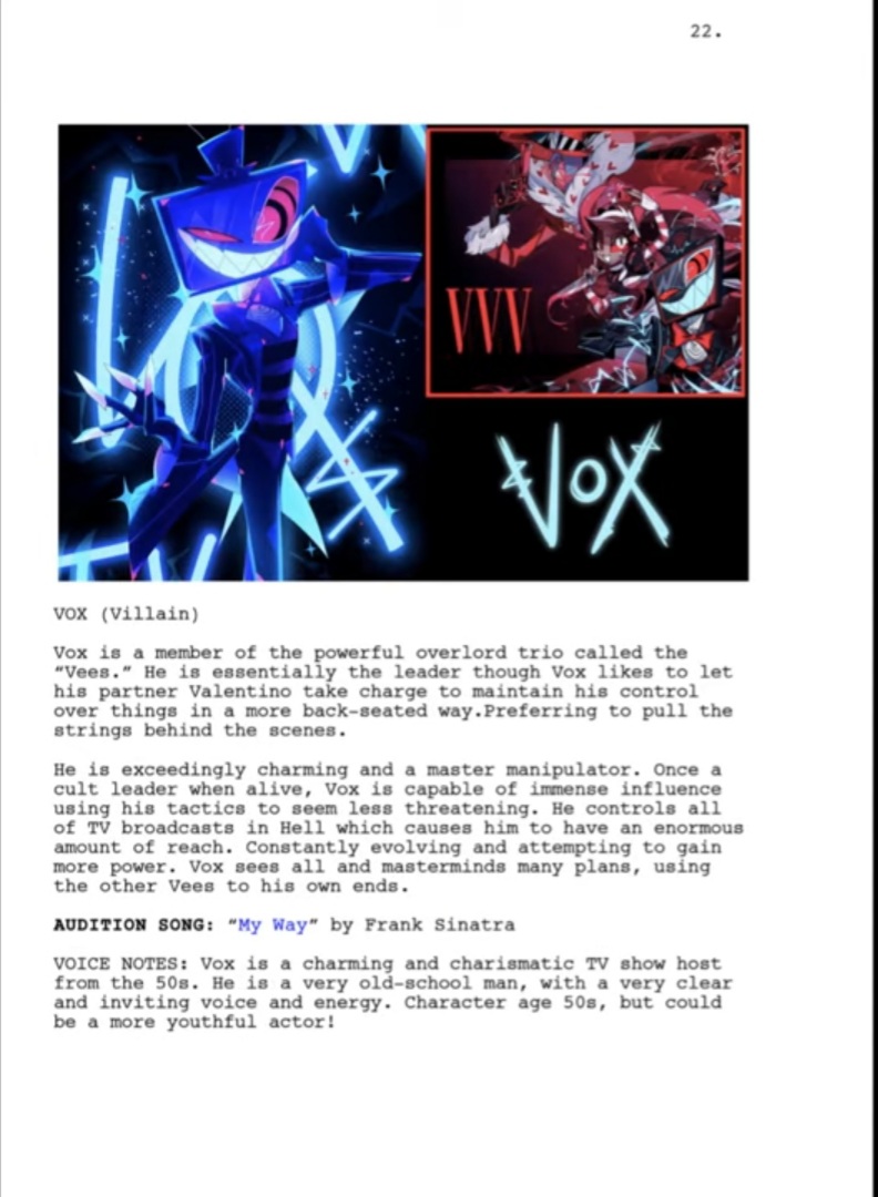 >>81558235>Vox likes to let his partner Valentino take charge to maintain his control over things in a more back-seated way. Preferring to pull the strings behind the scenes.I wonder if this will happen at the end of season 3 or in season 4