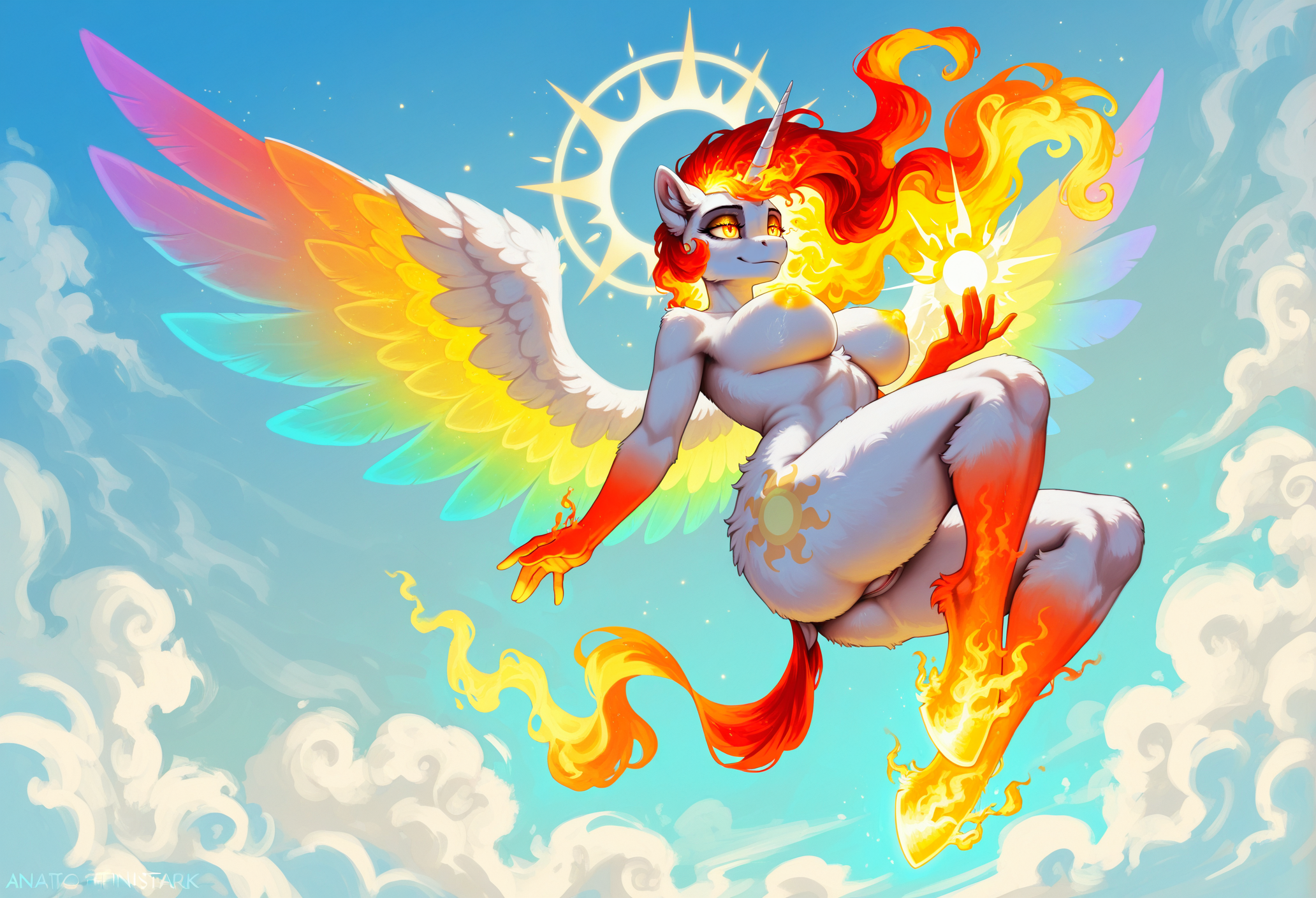 >>81571452I'm a big fan of Twilight, so my headcanon is that she mogs all the other princesses combined, but I can give the other princesses a shot.Luna is second best princess for me, so she's next.Idea for Luna was to get some more moon features in there. Did my best to not have the white from the moon clash too much.Celestia will be obvious. Just set her on fire basically.Not sure what to do for Cadance or Flurry.