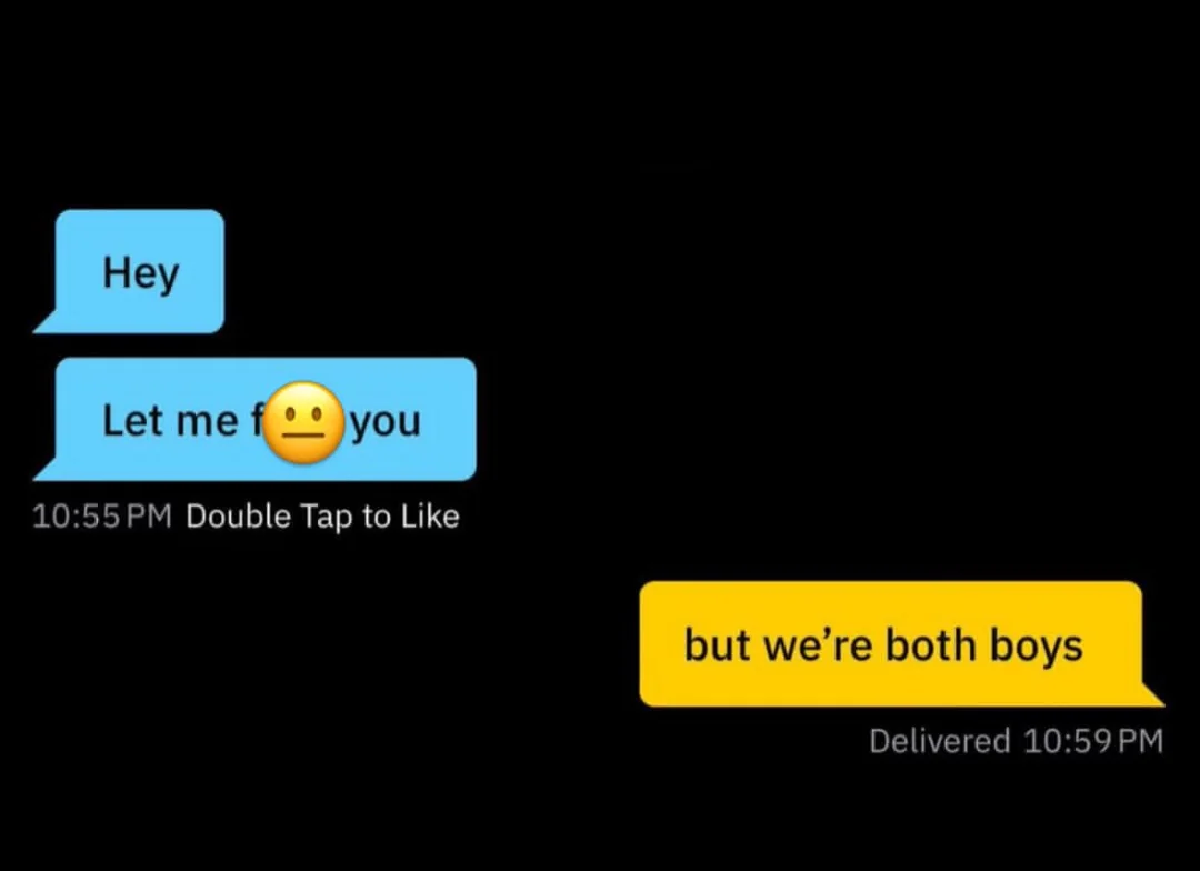 >>81605574I hate when you find some clearly prisonfag “uwu we’re both boys” boy kisser type dude on grindr, this would pmo so bad if I got this dm
