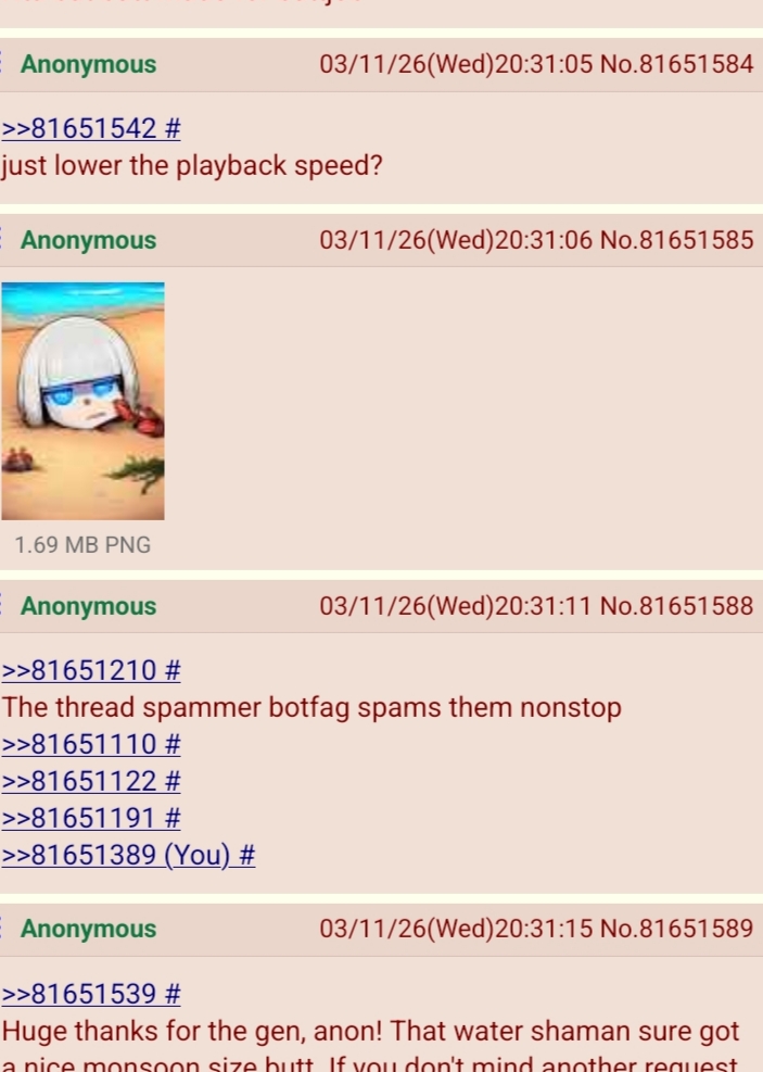 >>81651210The thread spammer botfag spams them nonstop >>81651110>>81651122>>81651191>>81651389