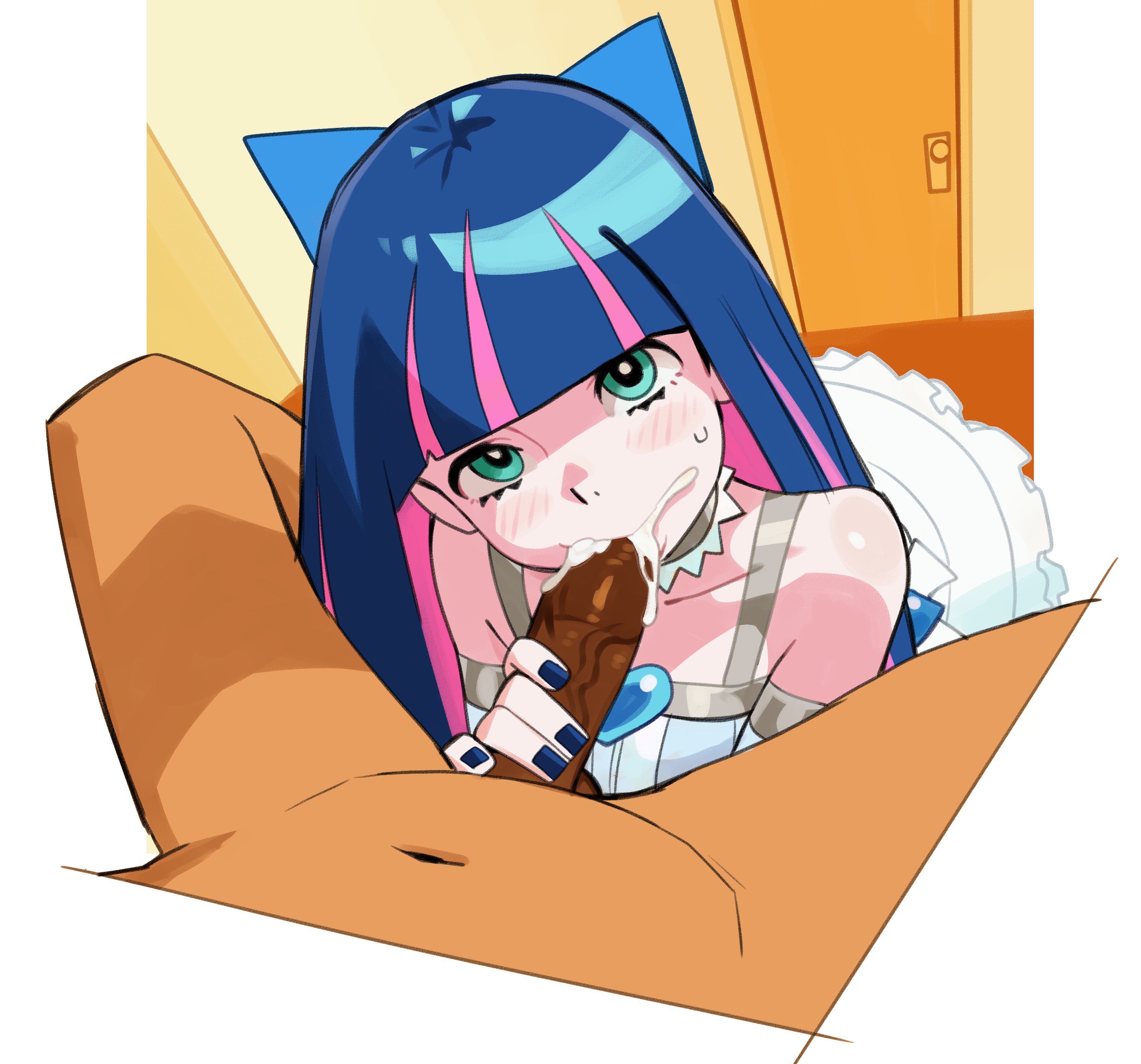 >>81786435D.va rubbing my thick brown cock all over her face