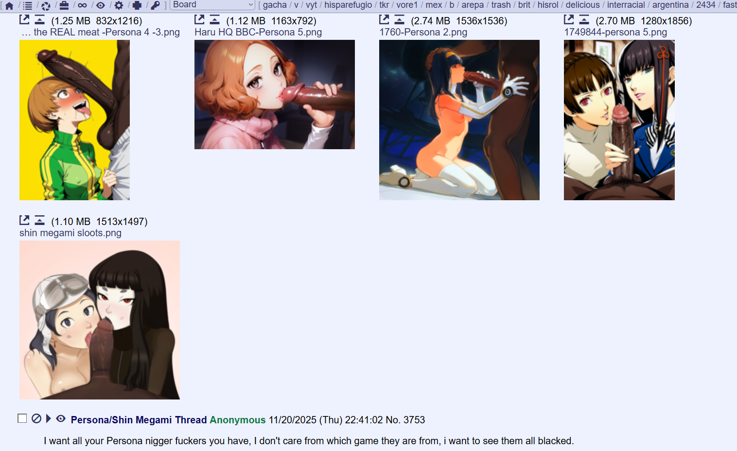 >>81797725if the dangan and persona slutposting threads merged, no reason why their blacked threads can't merge either.
