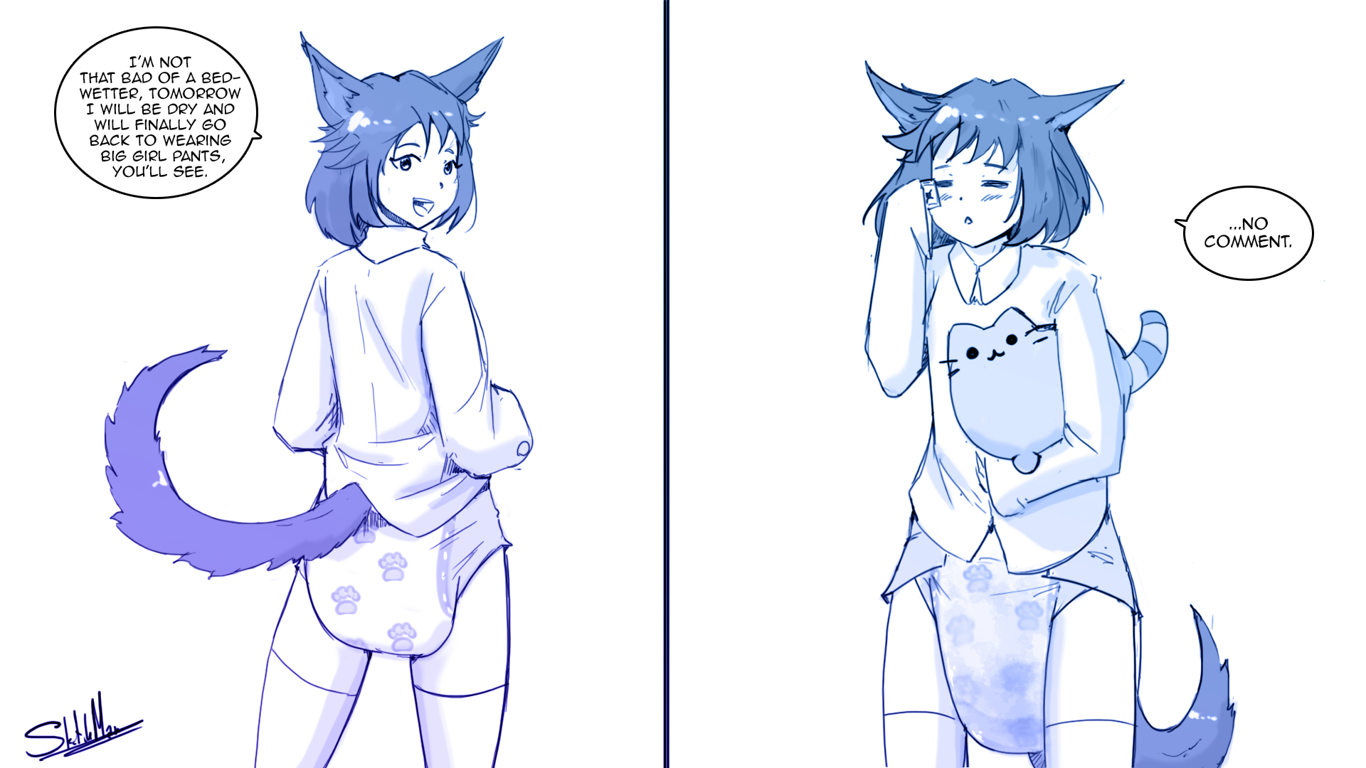 >Anon, is that you?>I always come to work at 3 am, this is where I restock the shelves. What are you doing here?>And why are you in the diaper isle?>And why are you holding a pack of goodnites behind your back?>and why do you look so nervous?>and why are you sweating so much?>and why do you look so horny?>and...>you like diapers, dont you anon?