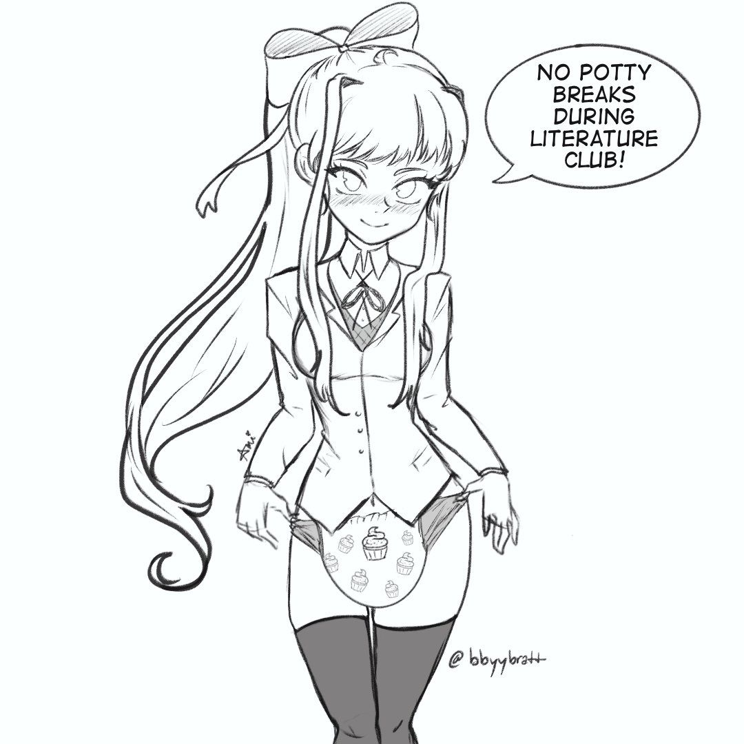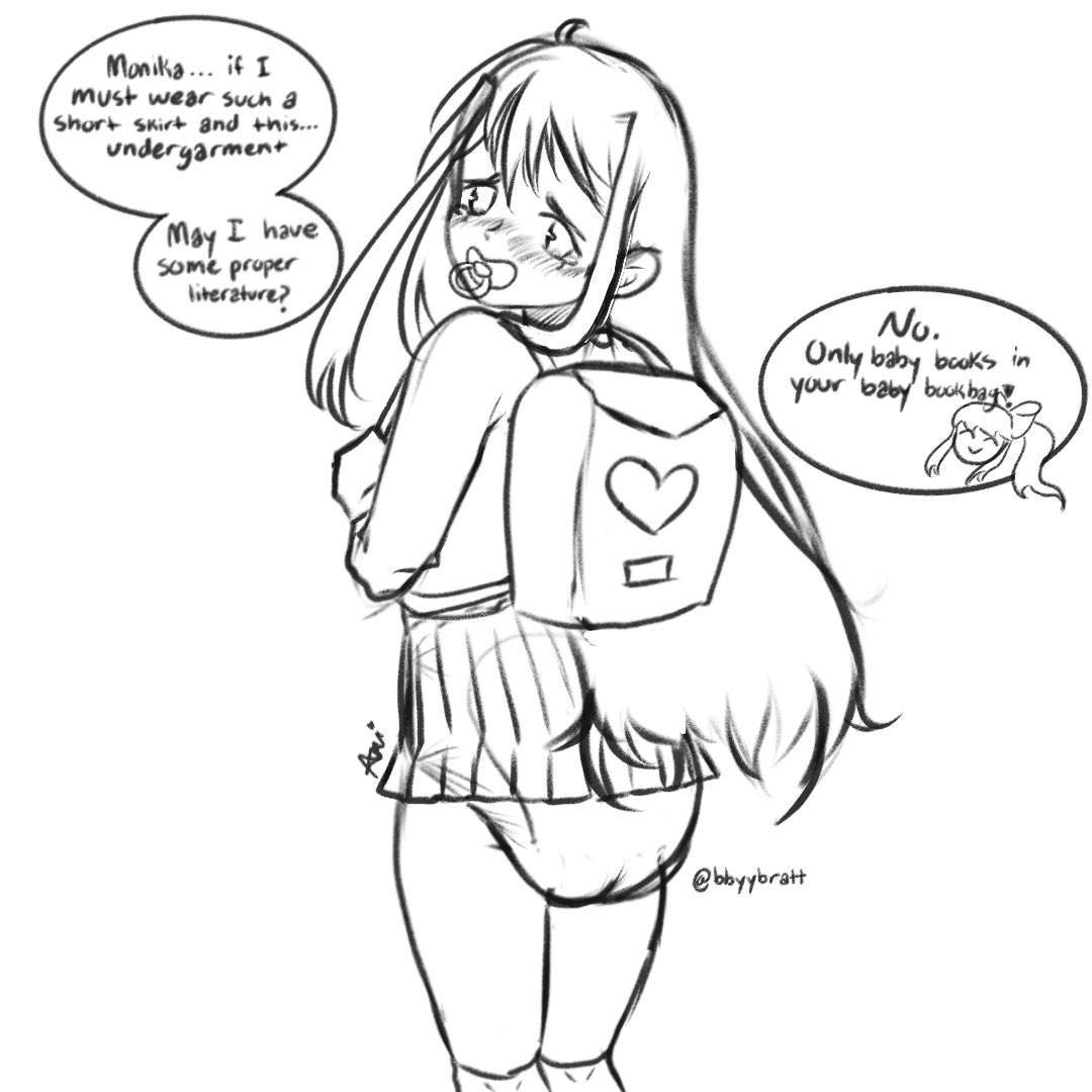 >>81920906I think that sort of shyness really suits her- Sometimes fierce and pouting, but you call it a tantrum and that turns her into a blushing pouting mess as she remembers what's crinkling underneath her skirt- The natural escalation of protesting against being into such things into eventually begging you to really treat her like a big baby... or take a darker twist and have those hidden desires forced upon her by Monika, for better or for worse~
