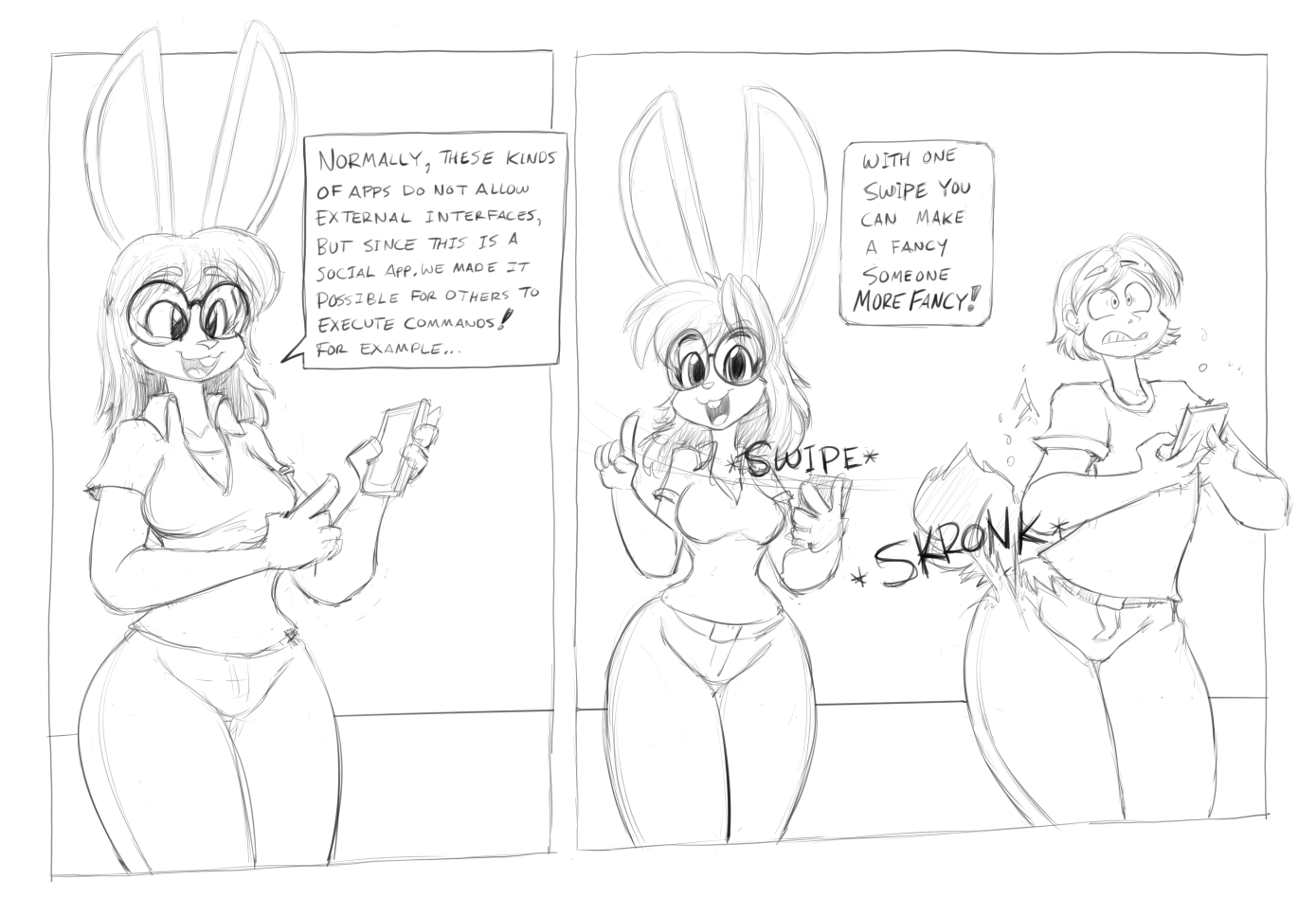 I like when TFs are reversible but can happen very easily to anyone unprepared So that if one is suddenly TF'd into a sensitive anthro in heat, it's okay to laugh at her for a bit before offering help... And "help" might come in the order of creampie first, medicine second