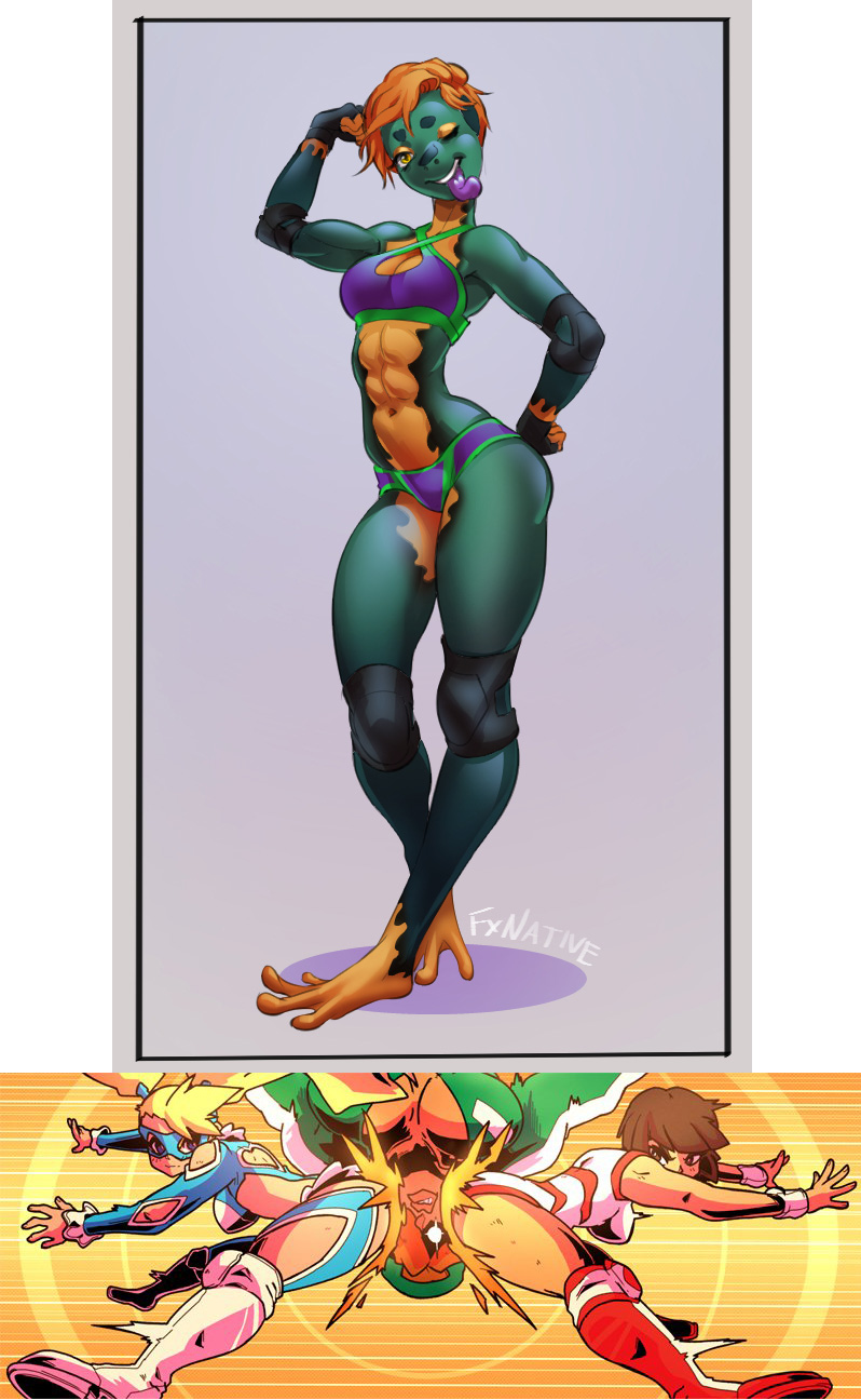 >>81917695>How did you (yes, you anon) come up with your OC?Nahue was a thrown away concept made by an artist I used to follow. I realized I had this design tucked away in my phone and realized I can use her for some nice art since this was a thrown away concept. I decided to make her a shoot style wrestler.Orginally, Her name was supposed to be a small play on on words for jaguars. Hence the term "Nahuel" being Nahue. However I decided to ditch that idea ad just keep the name since it makes her sound cute and approachable.>What inspiration(s) did you have? Are they based on another character?She has small attributes of Armor Kings color scheme from tekken. >How much have you changed your OC over time? Did you change them in big redesigns/reworks, or gradually over time?I actually changed her design. She was originally a jaguar or leopard with a blue fur pallete. I changed the colors since I felt like ot didn't suit me enough. So now I keep her old design as a second color. Like an alt color you see in fighting games like smash bros.