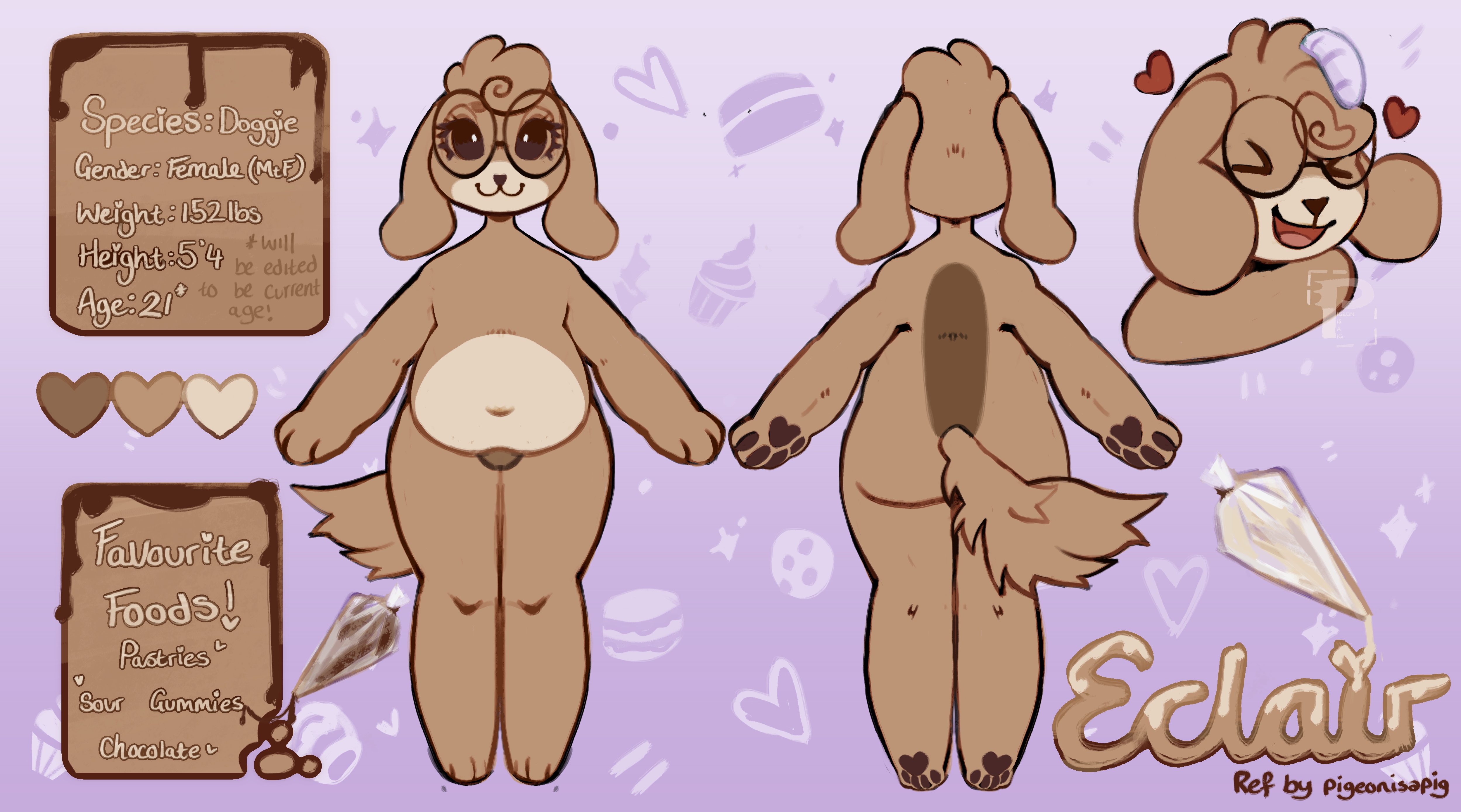 henlo! am back after a long time! c:>>81868285>How did you (yes, you anon) come up with your OC?well, I was talking with a bunch of friends, and eventually I realised that I really liked the idea of having a doggie character!>What inspiration(s) did you have? Are they based on another character?myself, actually! trans doggie girl with a knack for sugary food, basically describes me. never had a fursona before, and my friends helped me make one, and I'm really happy I got one now c:>How much have you changed your OC over time? Did you change them in big redesigns/reworks, or gradually over time?well, she's relatively new, actually. only thing is she was given less squat proportions than her first iteration.>Are they considered strange or special because of their origins?well she's pretty "usual" outside of her eyes, which are like that due to a birth defect that causes nearsightedness, so.. probably not? if anyone wants to draw her, a coloured sketch with her arms up in some way would be nice! she's supposed to have darker fluff in her pits but I keep forgetting to get art for it.