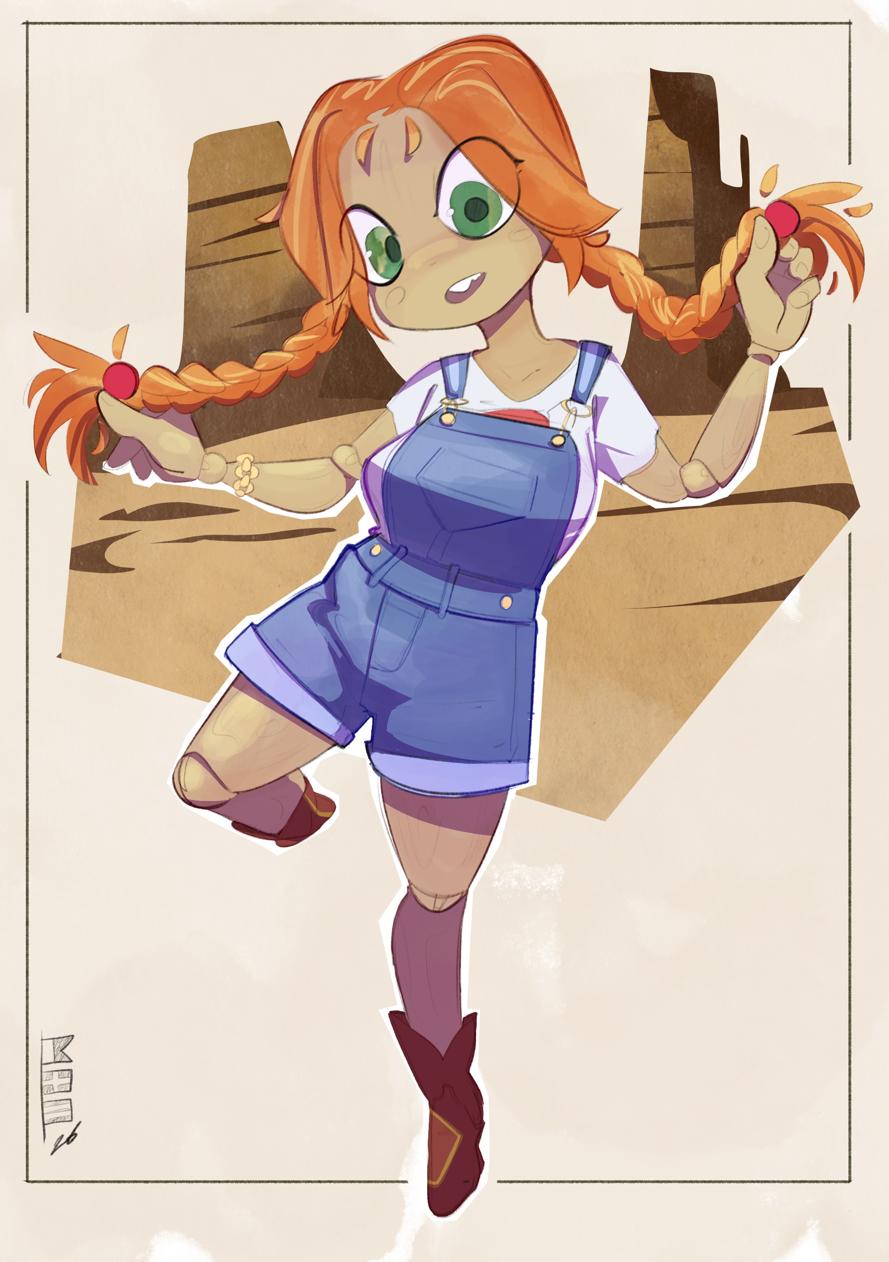 >>81868289Requesting a cute living/possessed (country) girl doll made of wood >>81868285>How did you (yes, you anon) come up with your OC? By watching toy story >What inspiration(s) did you have? Are they based on another character? Jessie from toy story >How much have you changed your OC over time? Did you change them in big redesigns/reworks, or gradually over time i don't even have a full design lol >Where did your OC come from (in their own universe)? From a desert >Are they considered strange or special because of their origins? i mean.. living dolls aren't really normal >How have they changed between their past and today? From non-living object to living object >Would you say they've become better or worse? She's here to only get worse