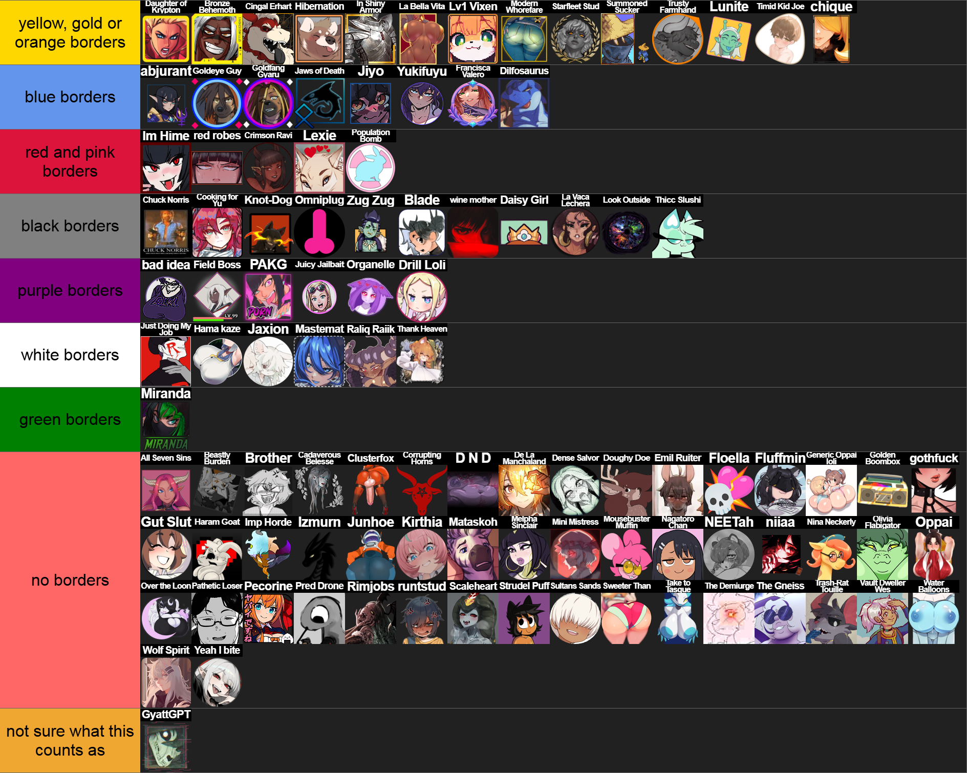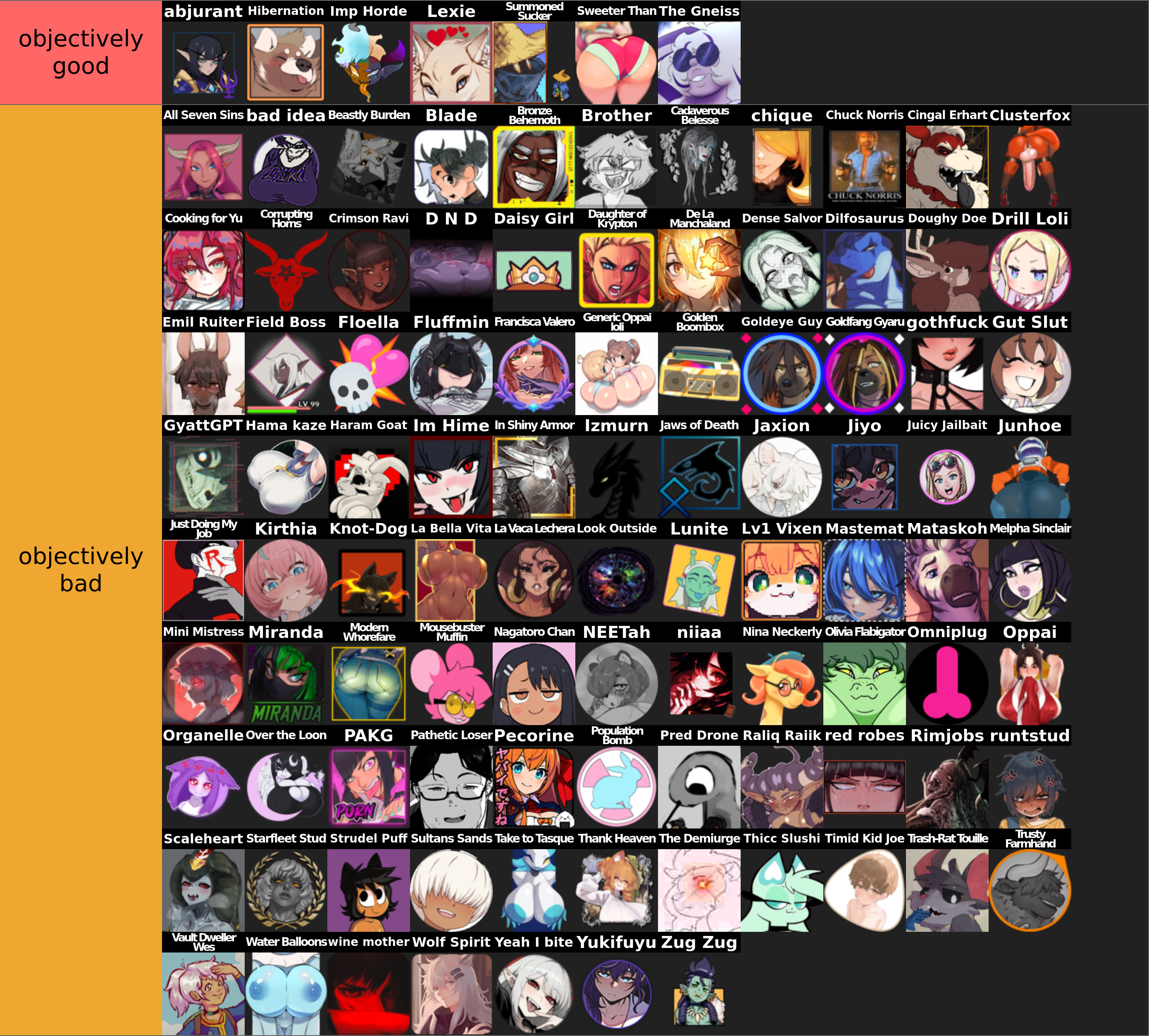 I'm Rimjobs and I literally have 5 profiles on the tierlist right now.>Why?It's fun