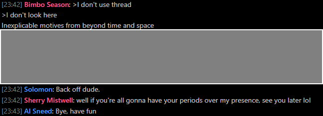 >>81886736I believe in an flg without borders. Where anons aren't judged based on the color of their name tag but instead the content of their bios.