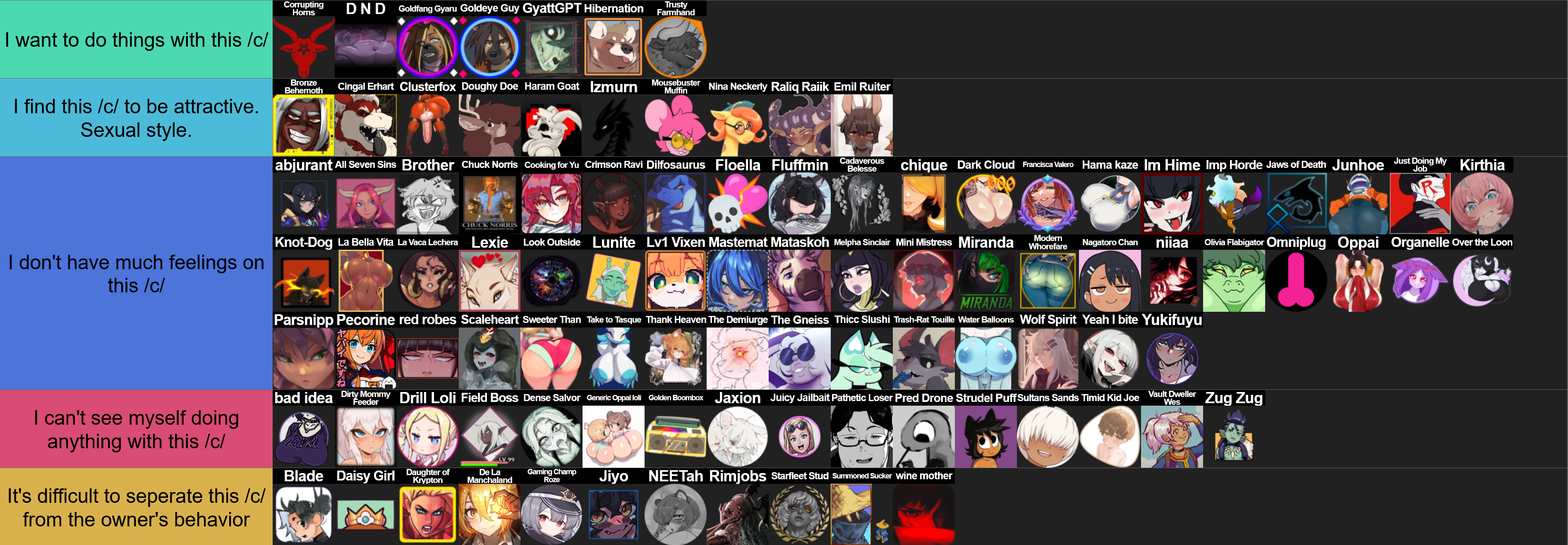 >>81886173Is this anything?I didn't make it but I like the tierlists like this one.