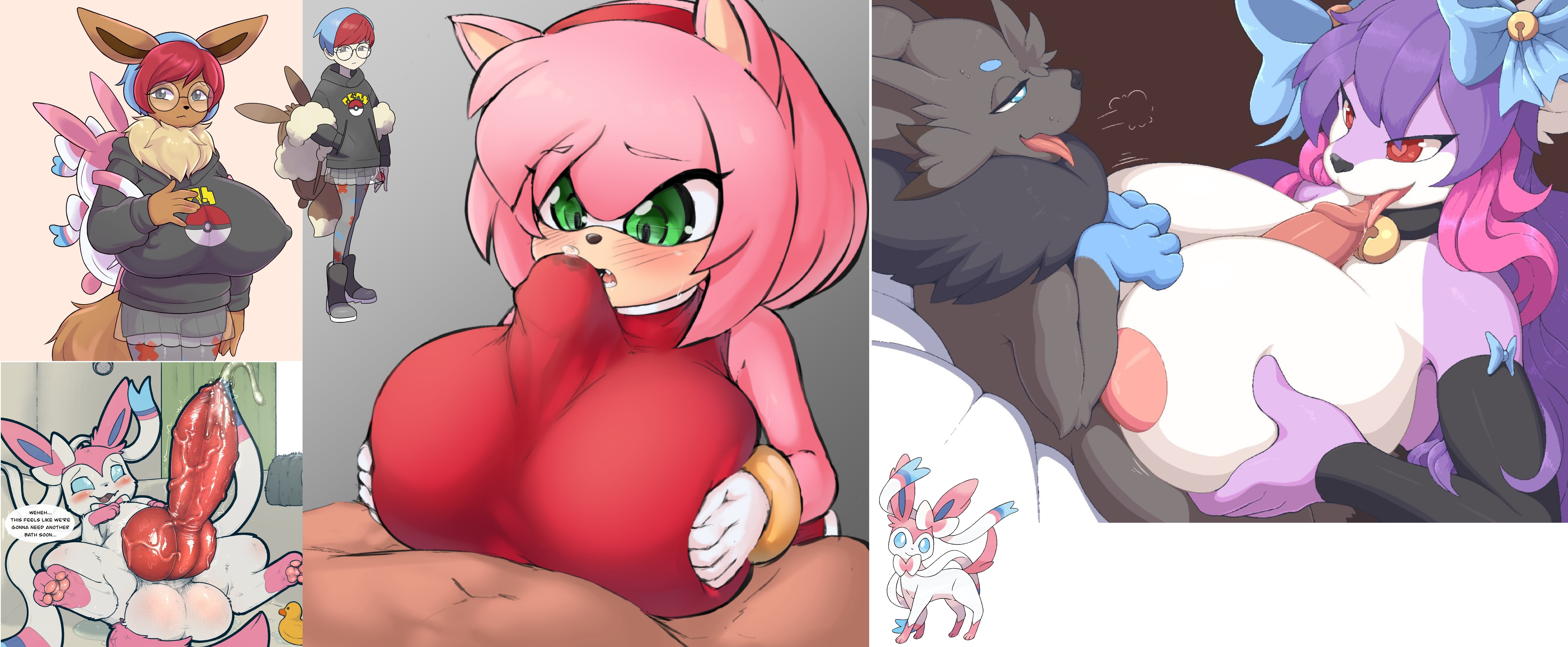 Requesting big titty Eevee-Penny giving a titjob to a hung feral Sylveon similar to the references.