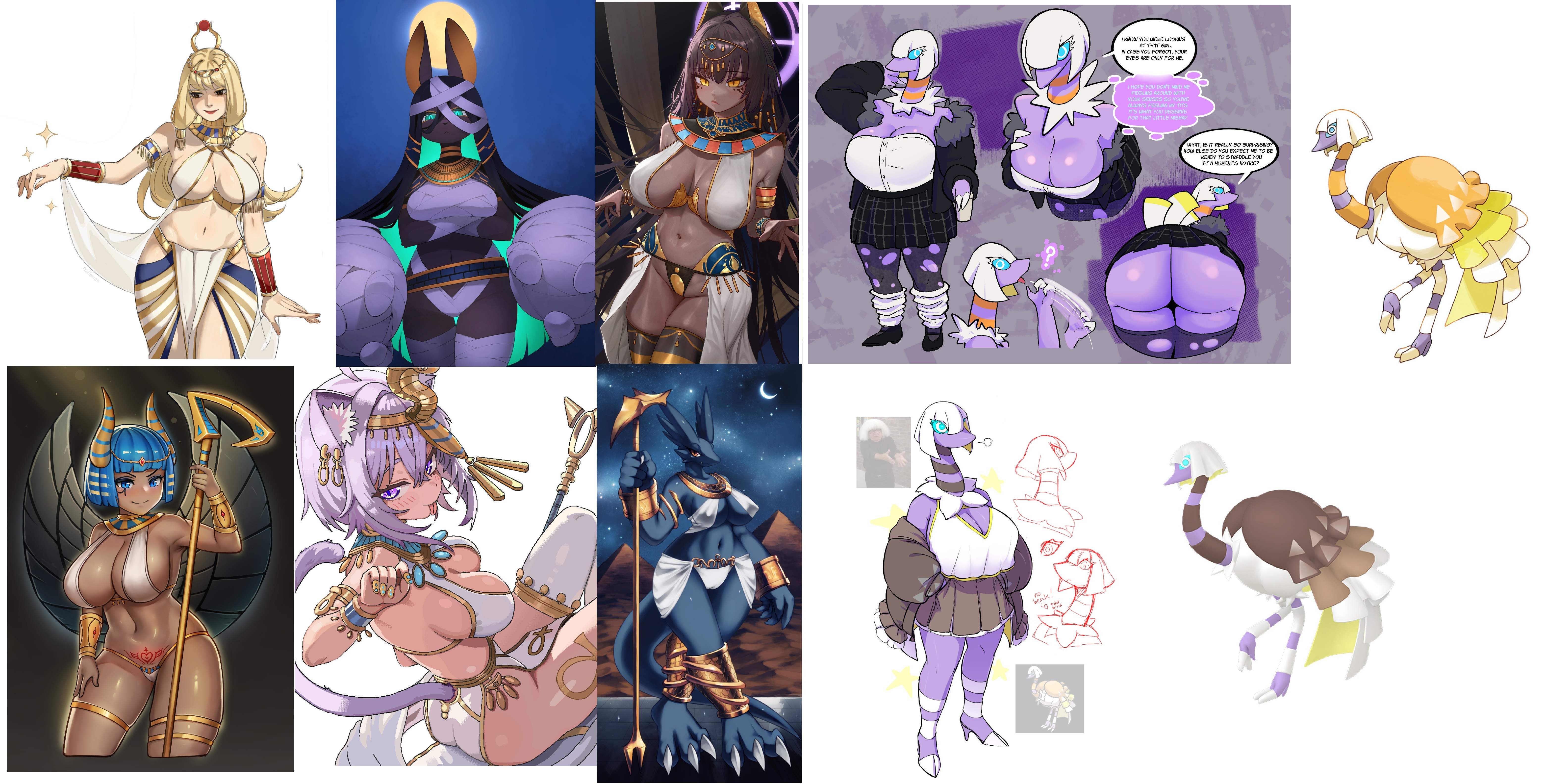 Requesting a female anthro Espathra dressed in skimpy Egyptian attire.