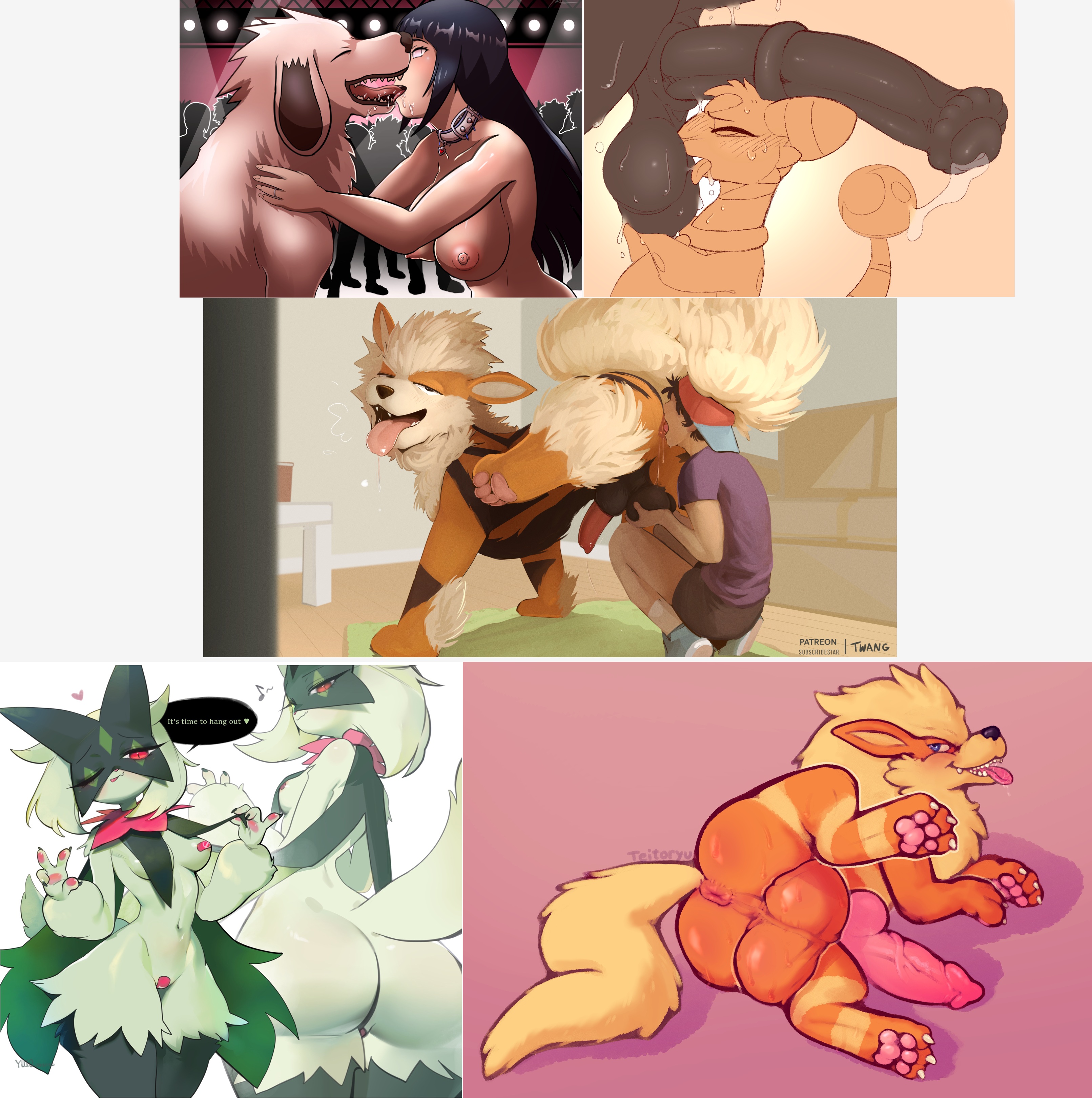 Requesting Meowscarada either rimming, genital worshipping, or sloppy kissing an Arcanine