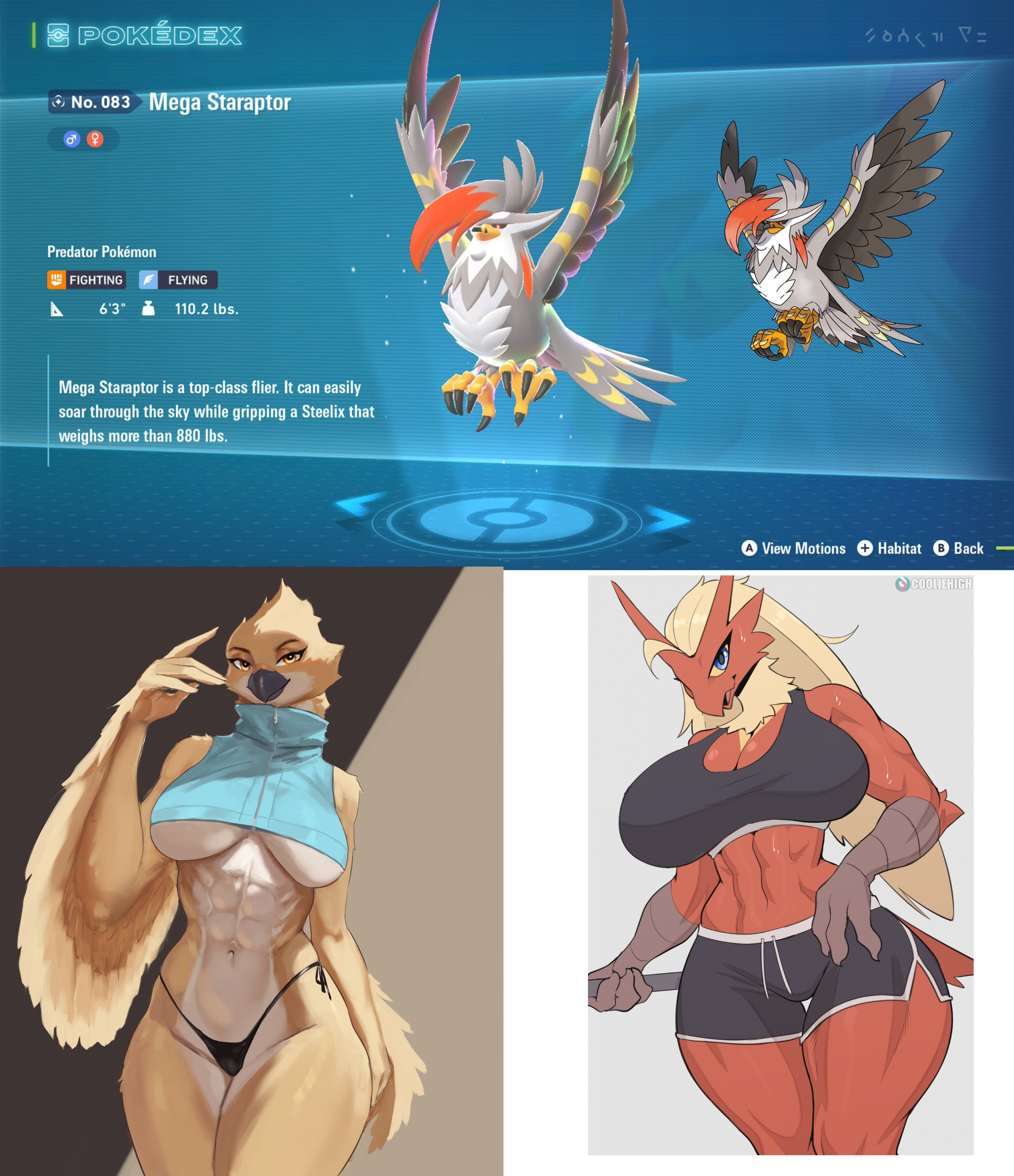 /r/ female anthro Mega Staraptor, points for visible abs