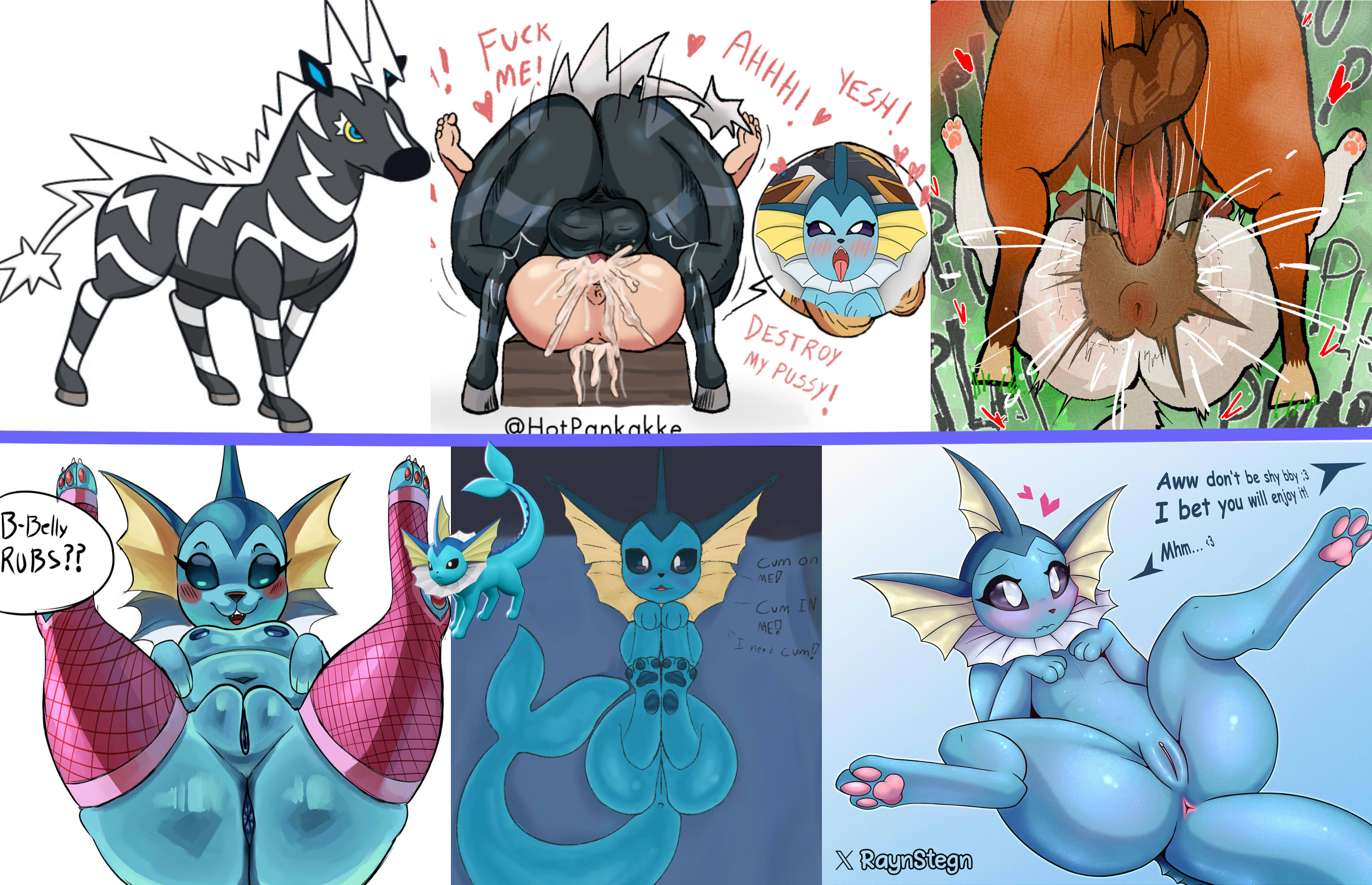 Requesting a fat assed Vaporeon getting mating pressed by a Zebstrika with a thought bubble showing her ahegao face.