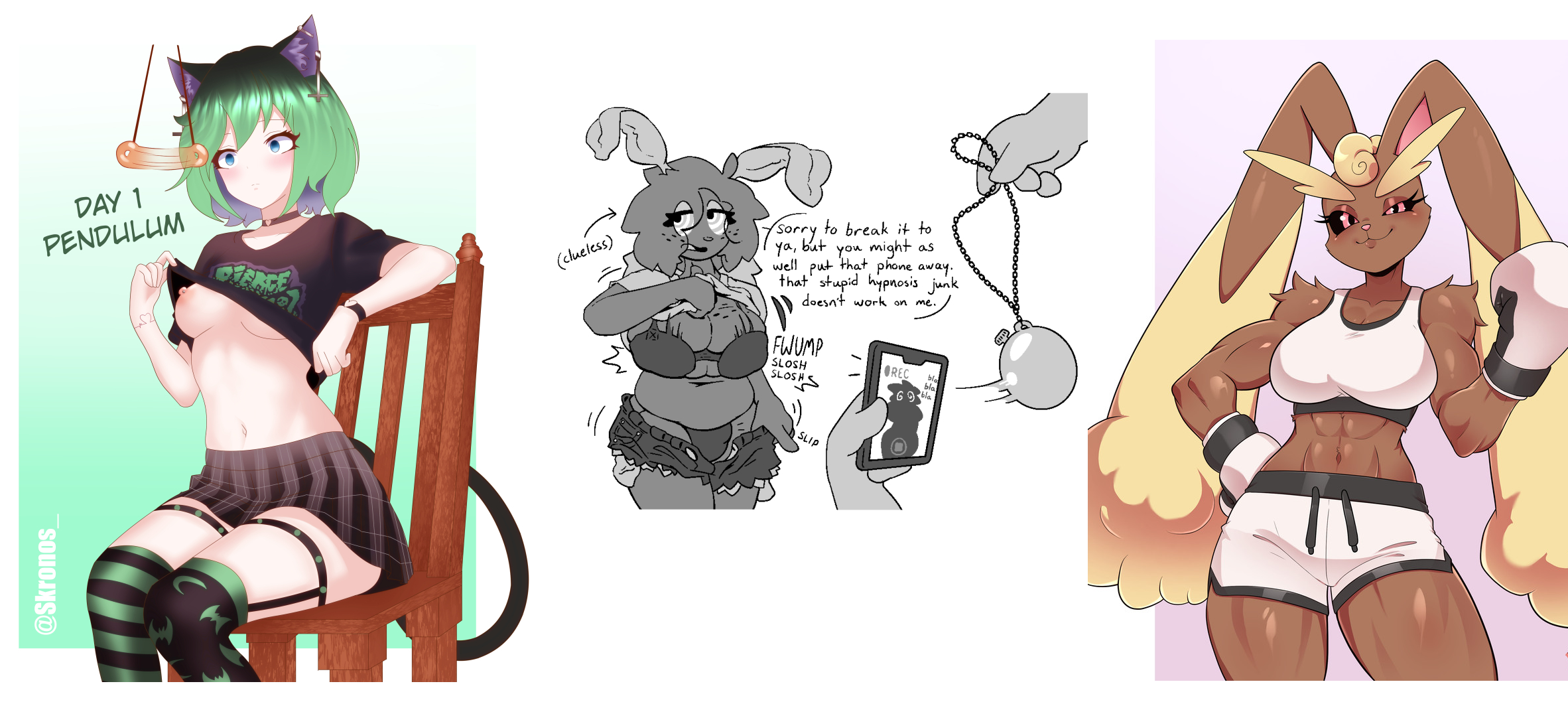 Requesting an anthro Lopunny hypnotized in a pose similar to these (Abs enjoyed but not required)
