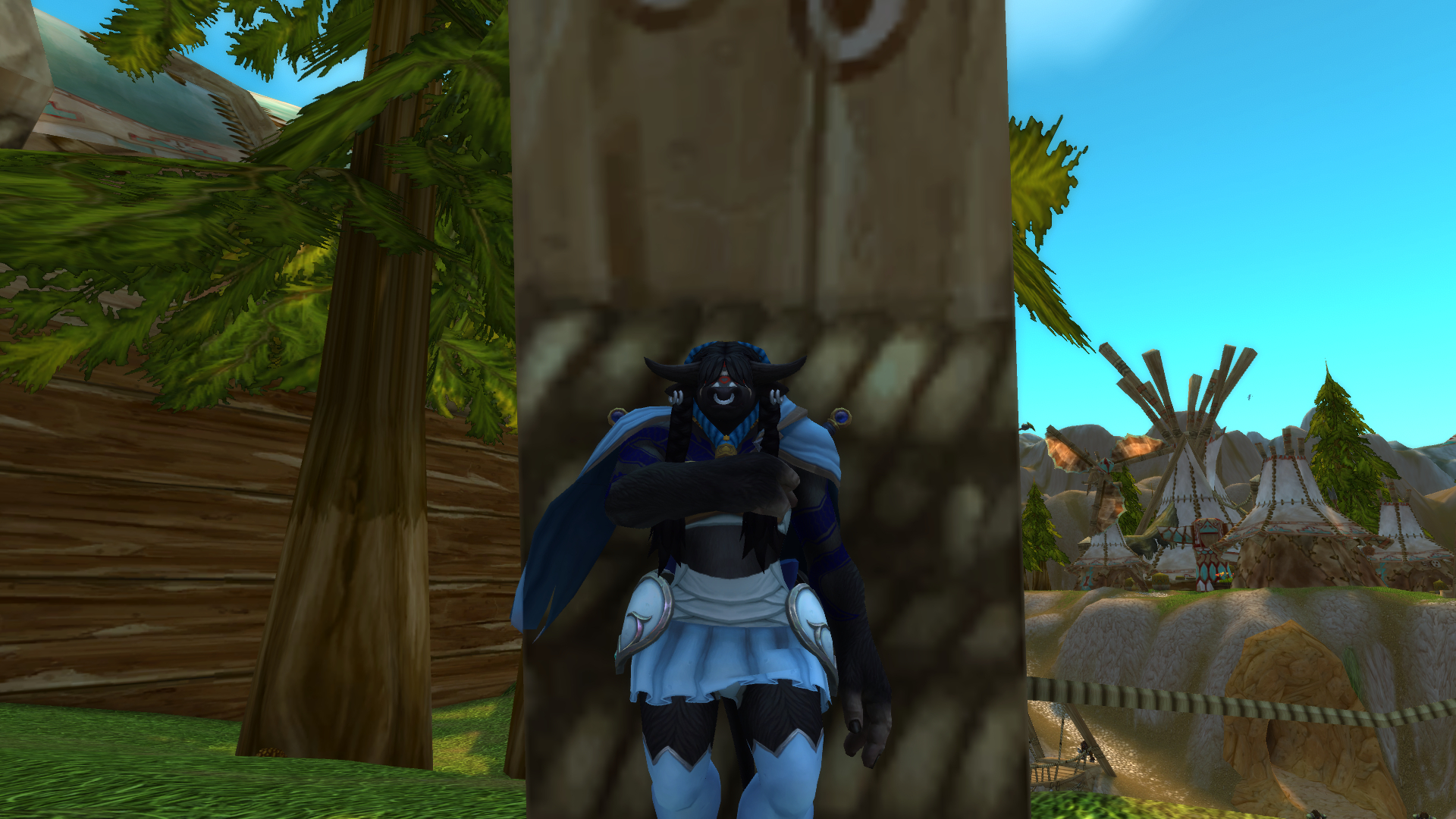 When tauren women wear this skirt it rides up so you can see their panties. This girl is just permanently flashing anyone (Alliance men) shorter than her.