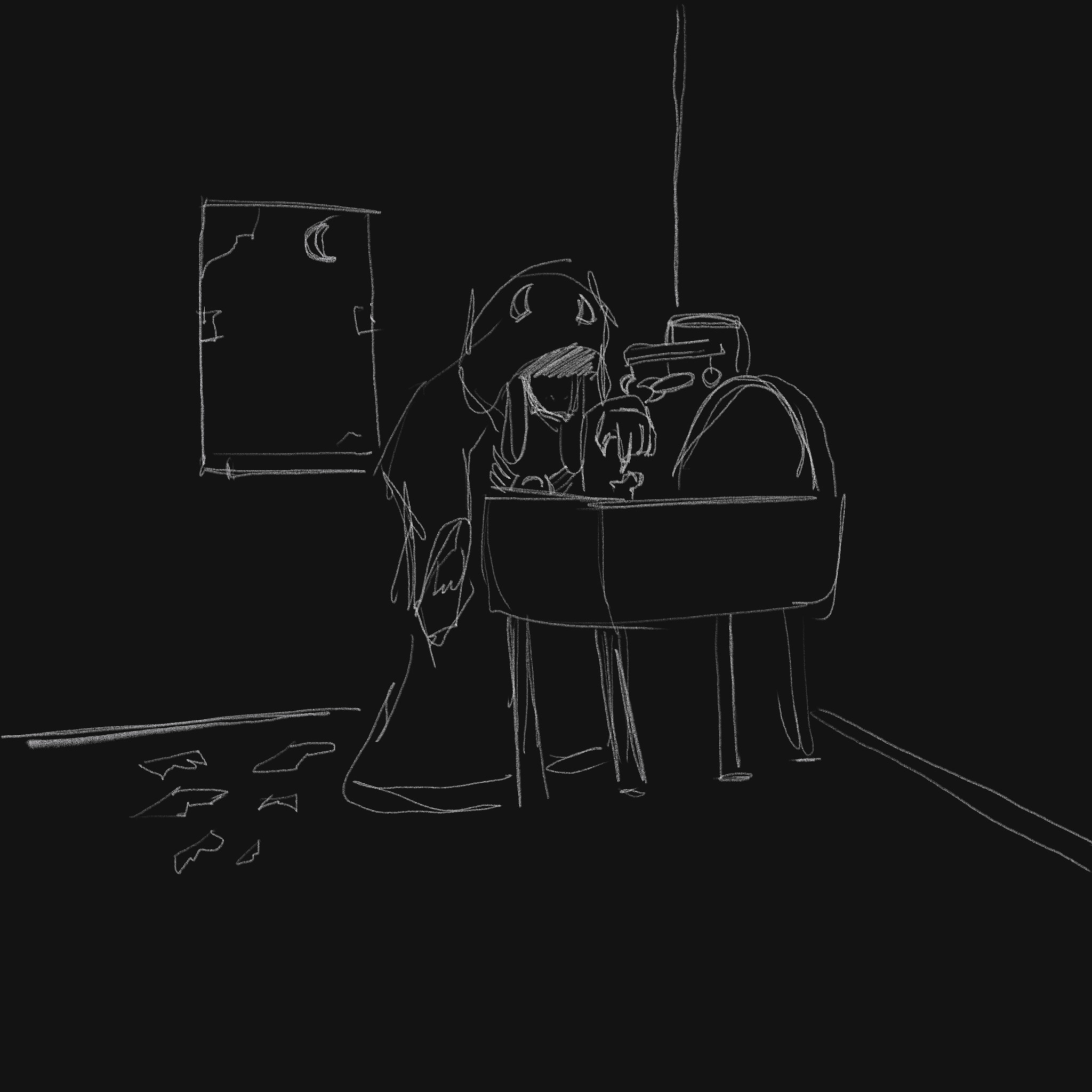 >>81911555>No matter how dark, it feels safe>As if her jacket is aegis>As if her arms are the most impenetrable of fortress walls. >As if her presence alone was a salt circle against things that squirm and grin just out of sight.>In the abyss of the bunker, December was the most gentle of safety blankets.>If only it really was as safe as they felt>If only they made it out together>If only they never went in >If only>It's all your fault Kris.