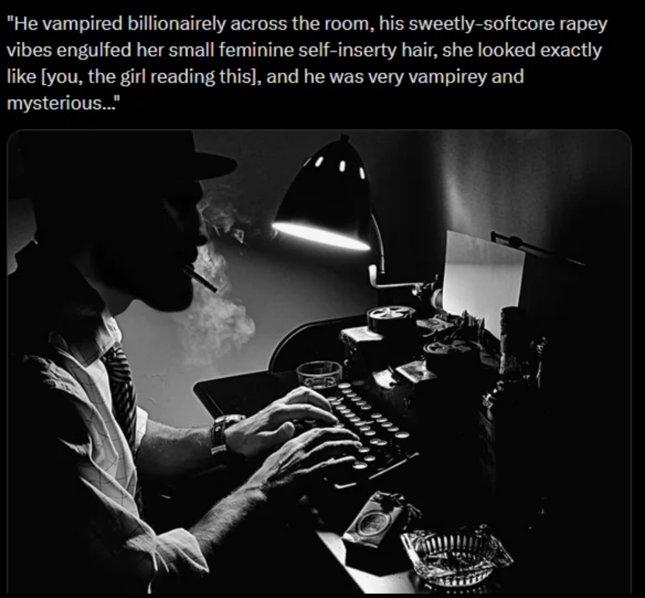 >>81918233I have literally never seen any goonertalk wobbleflanker complain, it's always the people who hate that sort of writing complaining about it.