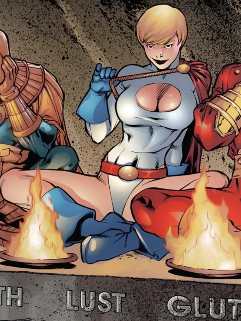 >>81928649Yeah, def needed to see her in the buff. But the overall narrative is the ideal PowerGirl story I think. Villains and civilians alike only caring about her big melons.