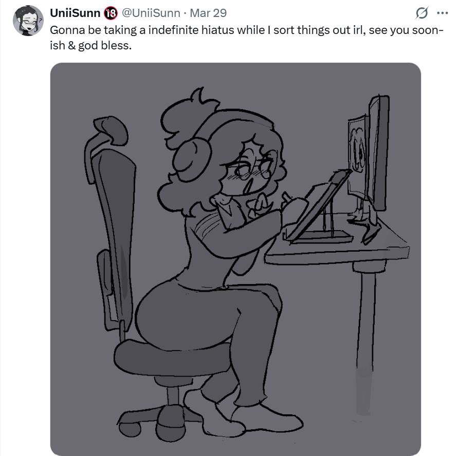 >>81996345It’s not over, people are horny for incest, they’ll still pump out content, even if it’s “free”, nothing is stopping them from just releasing it right? Or is any work related to them also considered part of their content even if it isn’t published on Substar or Patreon?