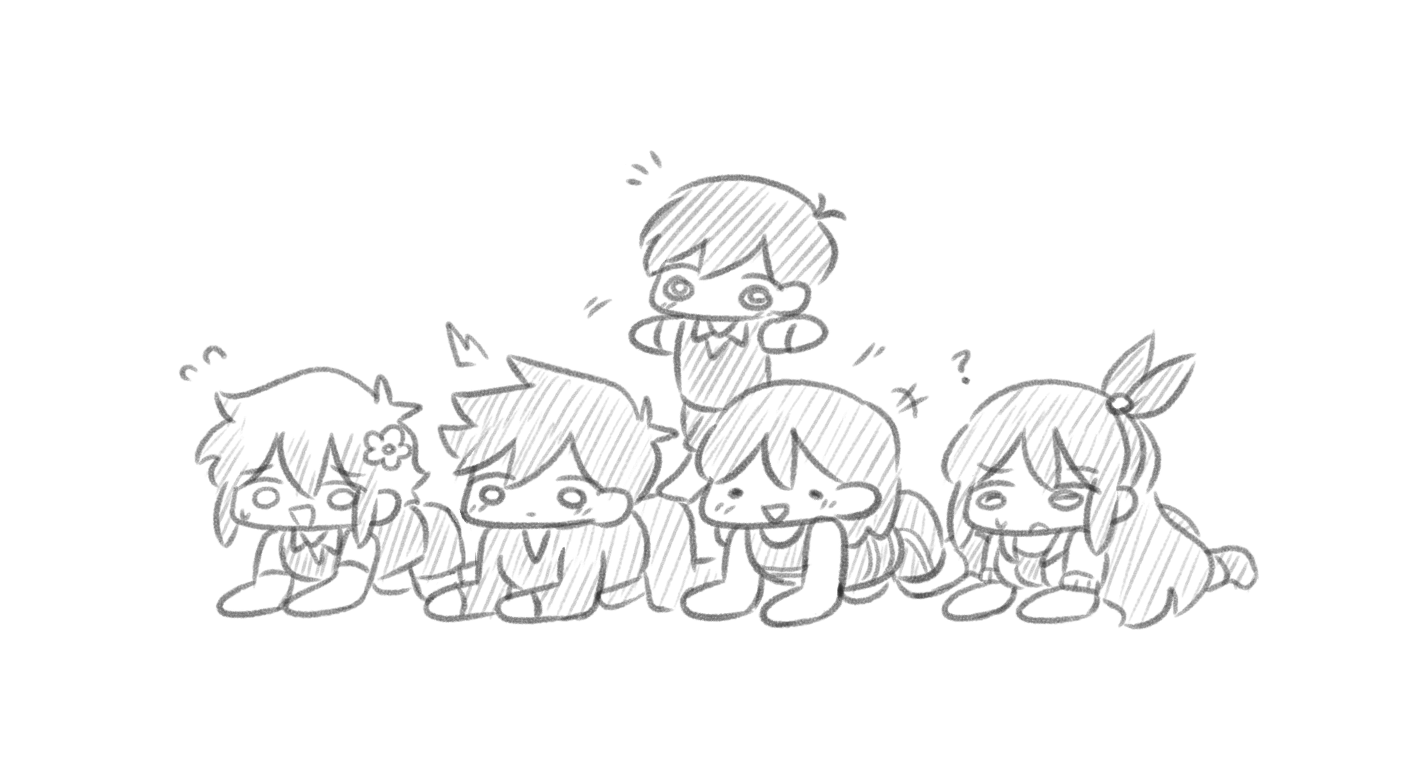 >>81957657Sunny, Basil, Kim, Omori, Aubrey (Dream)