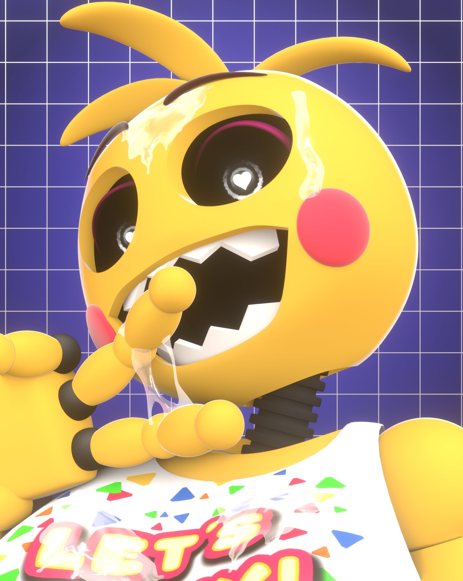 I genuinely don't get why toy chica gets such a glazing. sure she is apparently wearing panties and has an apparent ass, but its pretty mid among current animatronics. the looks like an angry yellow ping pong ball with tits and an ass.