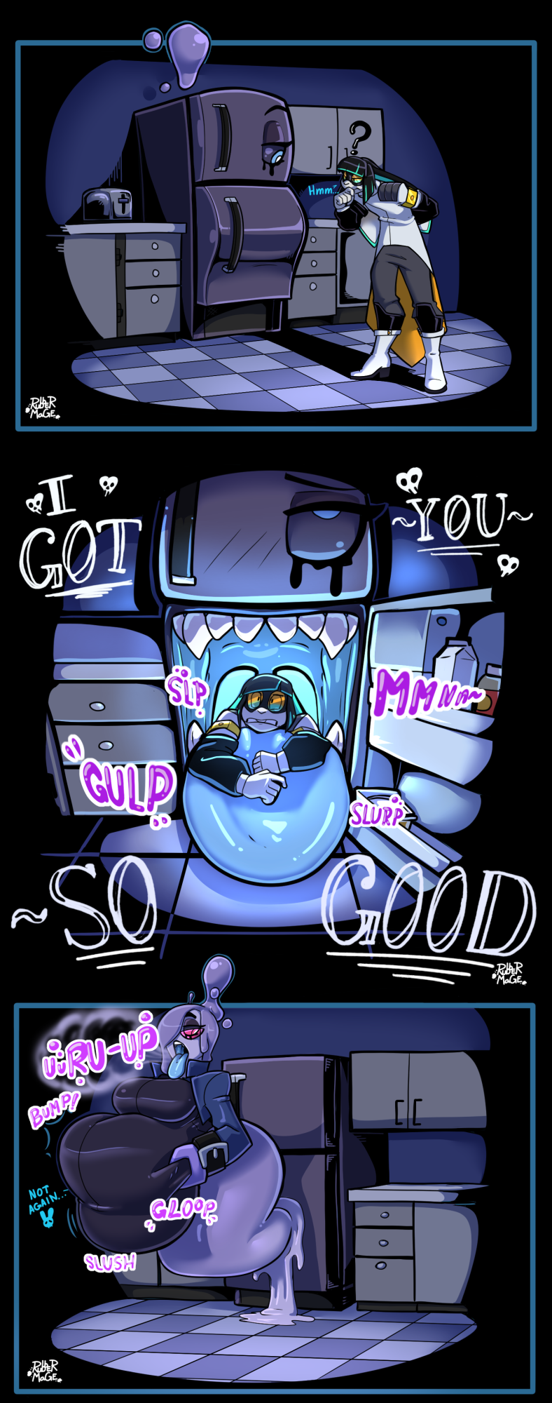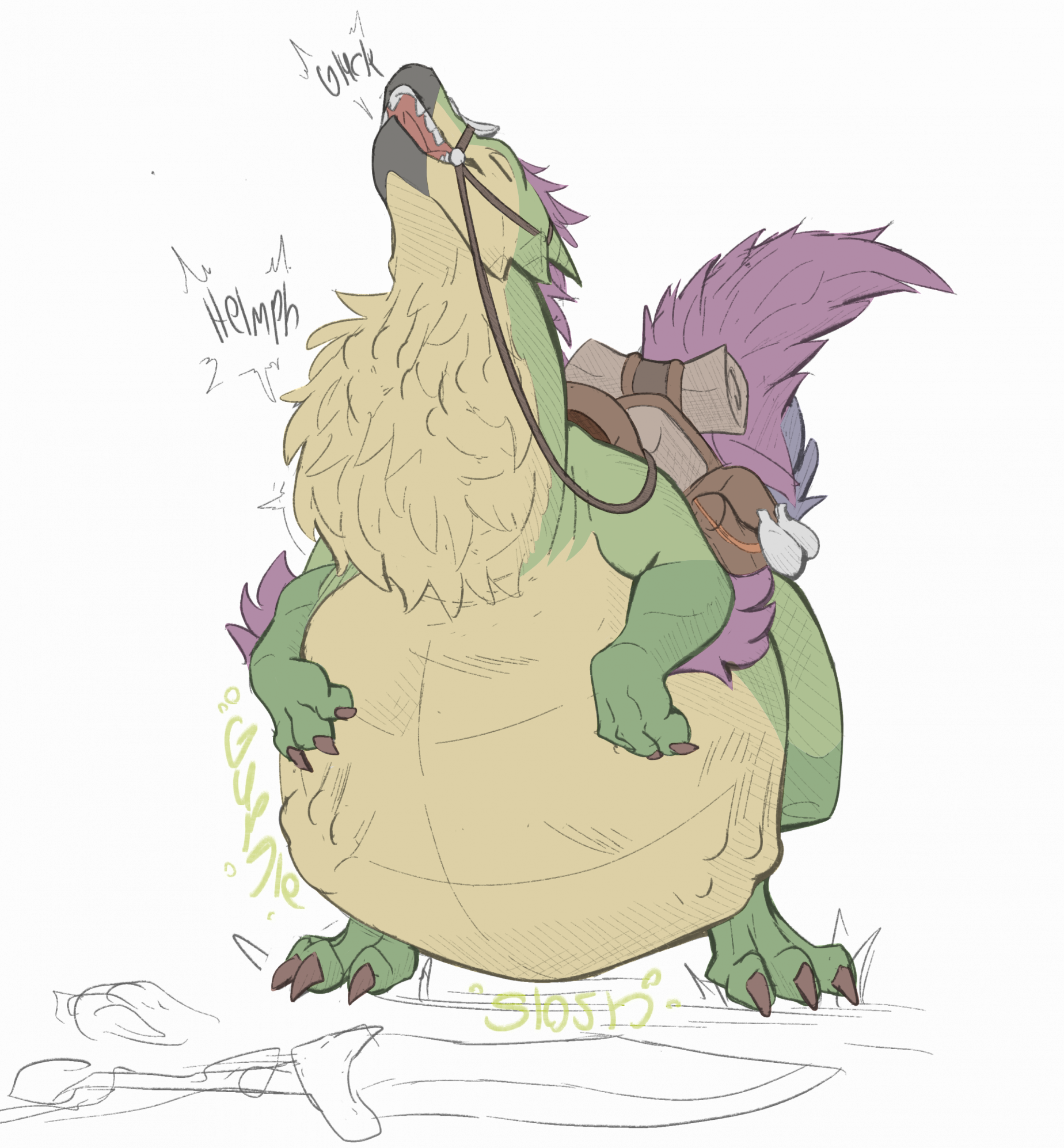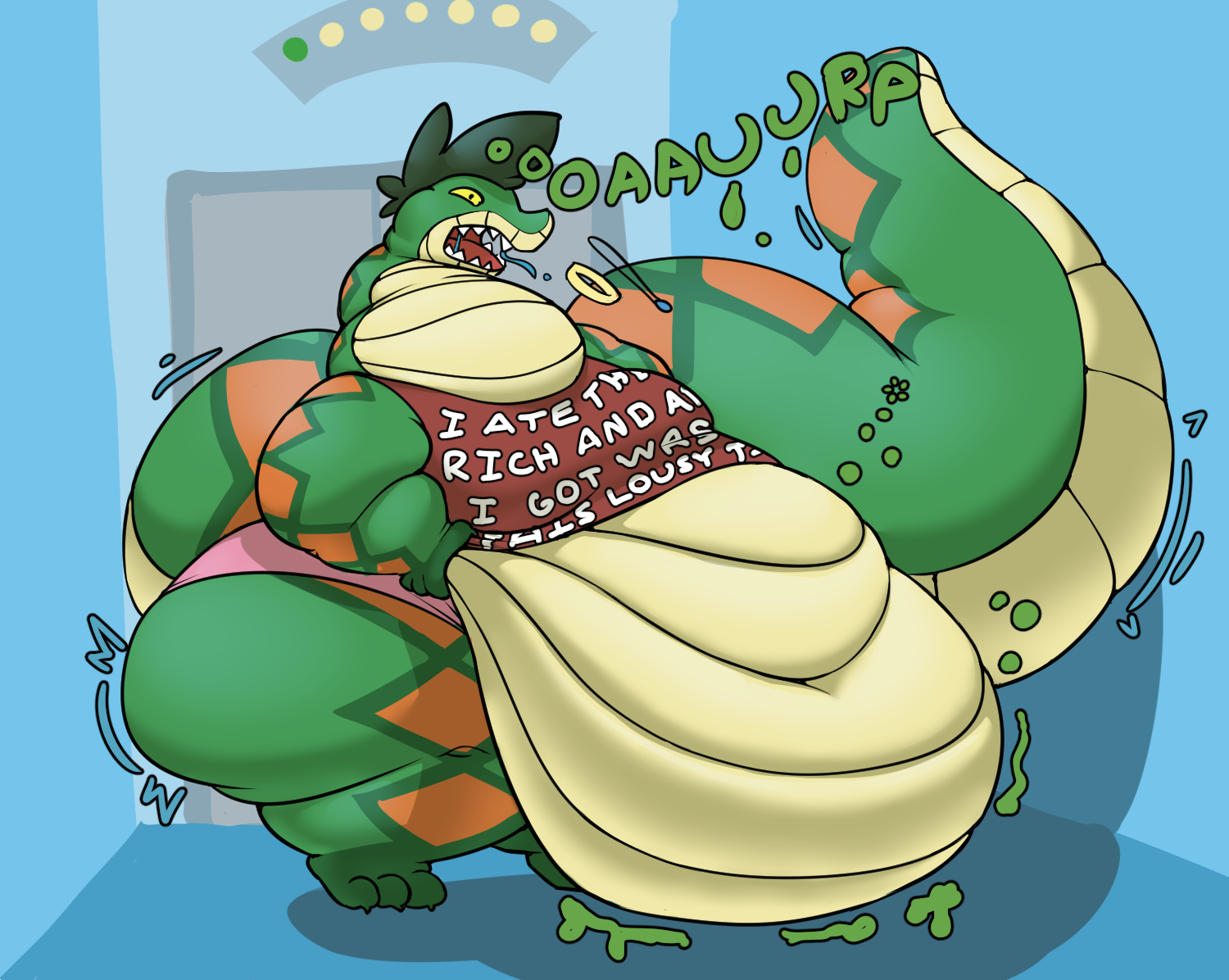 >>82039490Didn't add my sig to any of the pics, but this is Evergreenplate.>>82039738Thanks!Bubbles around her mouth showing off the belch in the water. Some discoloured saliva/stomach juices around the bones dissappating into the pool water.You can also have some belly blush to show her gut being strained from it's new size.Additionally some stomach noise onomatopoeia can't go bad.