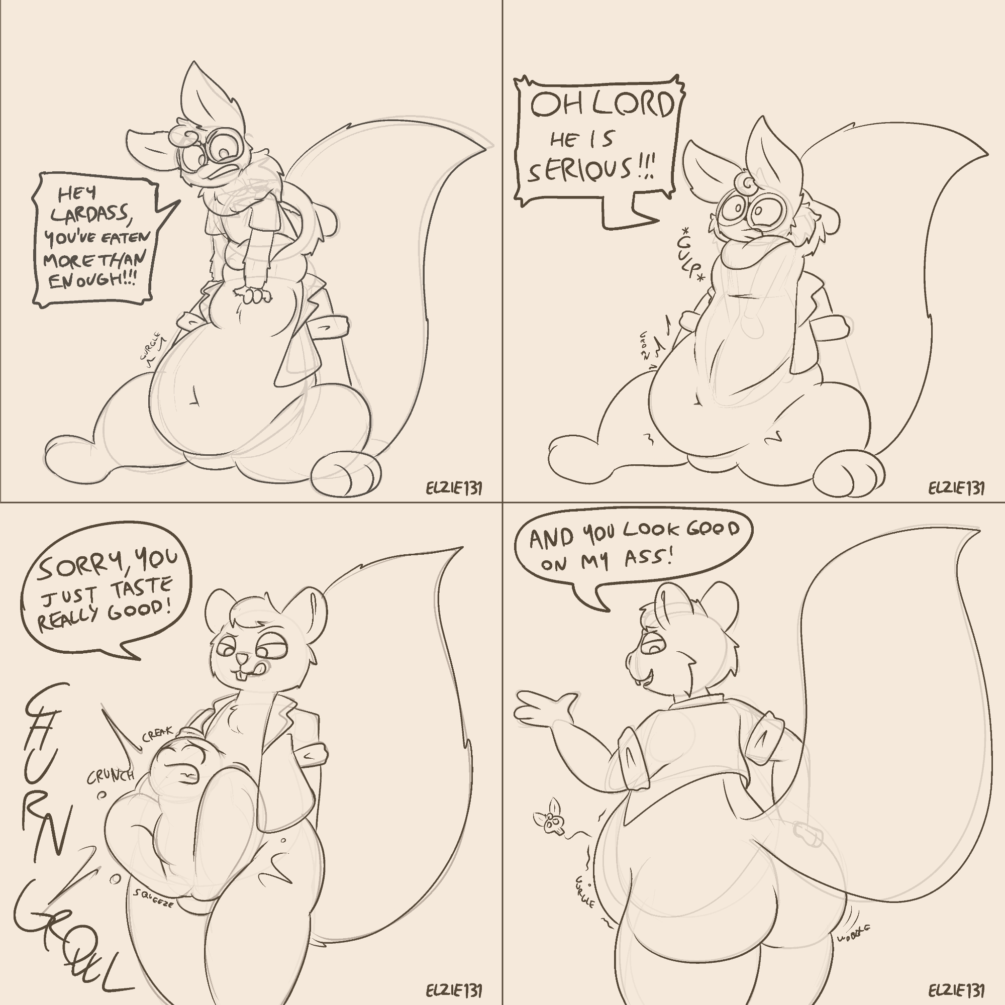 >>82008351Pretty sure she's not a squirrel, iirc he mentioned she's another animal that looks like a bunny but isn't.>>82008369Yeah, this one, i love the "oh lord he is serious" panic and the tight bulge after.>>82009498>>82009509Oh damn i never saw the bee.
