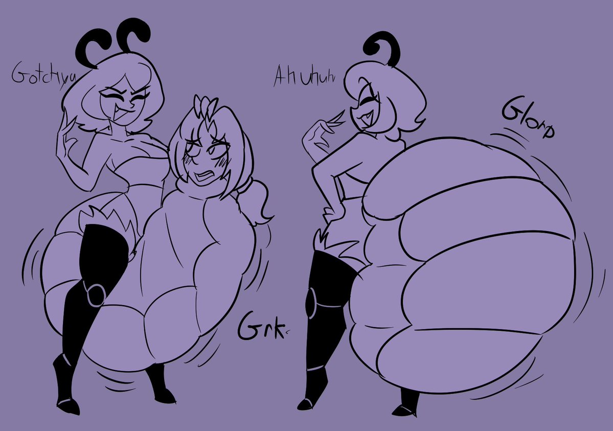 >>81995330I had a concept once for a ghost pred & prey pair.>One day a pred ate a prey but then both get struck by lightning or something>They die and become ghosts, but the prey’s now trapped in the pred’s belly forever since that’s where they were when they died>They act like bickering neighbors who argue over stupid shit since they’re stuck with each other 24/7The thought of some round-bellied ghost yelling at their gut to stop making so much noise is funny and weirdly hot. Unwilling-pred-perma-endo.