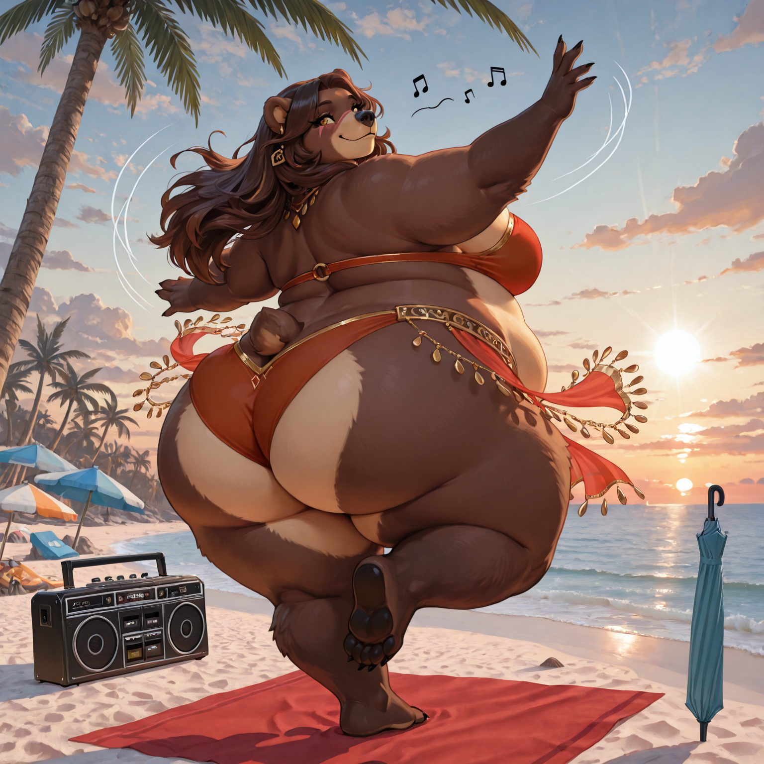 >>82019208Not sure if you are still open, but can you draw up a dancer bear shaking her belly around?
