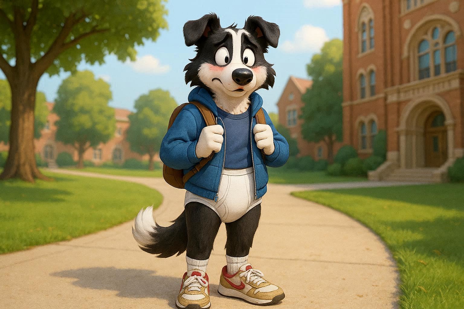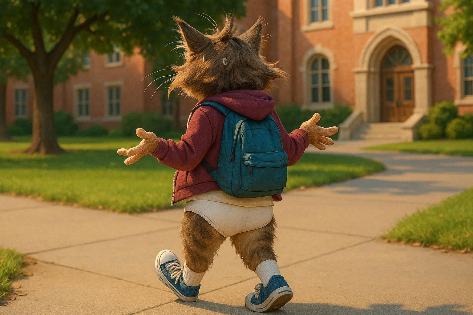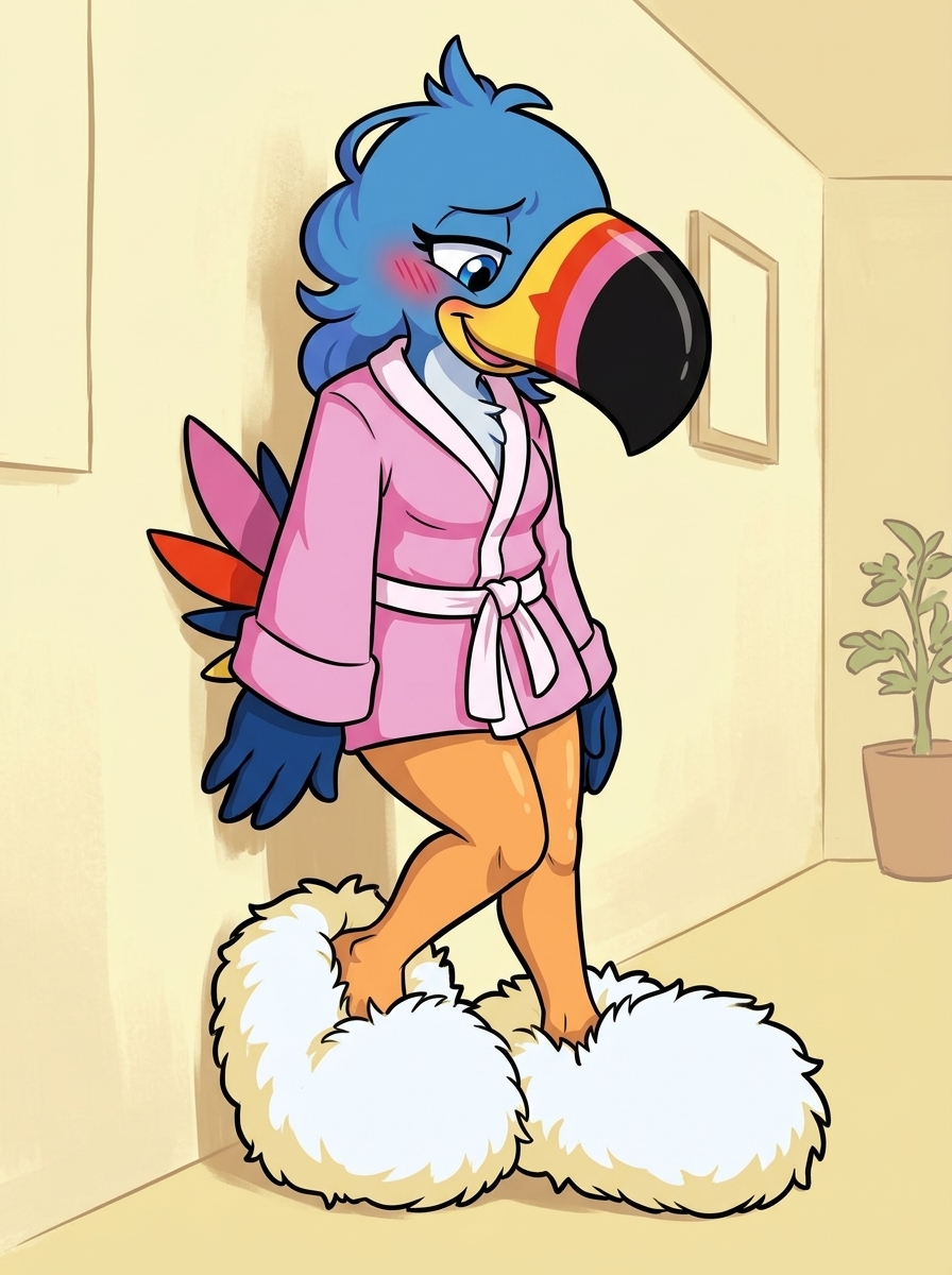 Before creating the classroom pic, I did a wardrobe test and pitted several AI models against one another to see which could do a proper job of generating an off-shoulder Nuka Cola crop top. Results were mixed.Almost every AI wanted to reduce Walks' bust size, despite my instructions to not change her proportions or body. There was a bias toward form-fitting tops; FLUX.2 Klein was one of the few to generate a looser, more draped fit. And though the reference image indicated one shoulder should be bare, I often got both shoulders instead. On a couple of occasions, the AI ignored the reference image entirely and just did its own thing, based on the description alone. Seedance, on a couple of gens, interpreted the prompt to mean "dress her EXCLUSIVELY in the reference top", and removed the bikini bottom; I'm not sure how those slipped past the filter. A few gens changed the bikini bottom to colour-coordinate with the top.Wan 2.7 Image just became available, so I gave it a try as well. The results were pretty much the same as the others, but it gave me four 2K image-edits for just 2 credits, which seems like a fairly good deal. I could have generated them for free by turning off the credit system, but I didn't want to wait.