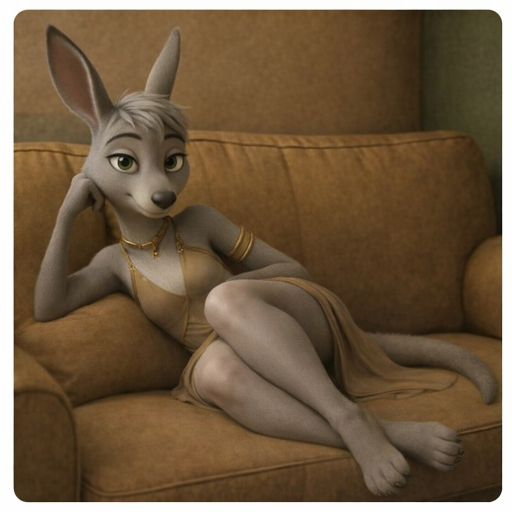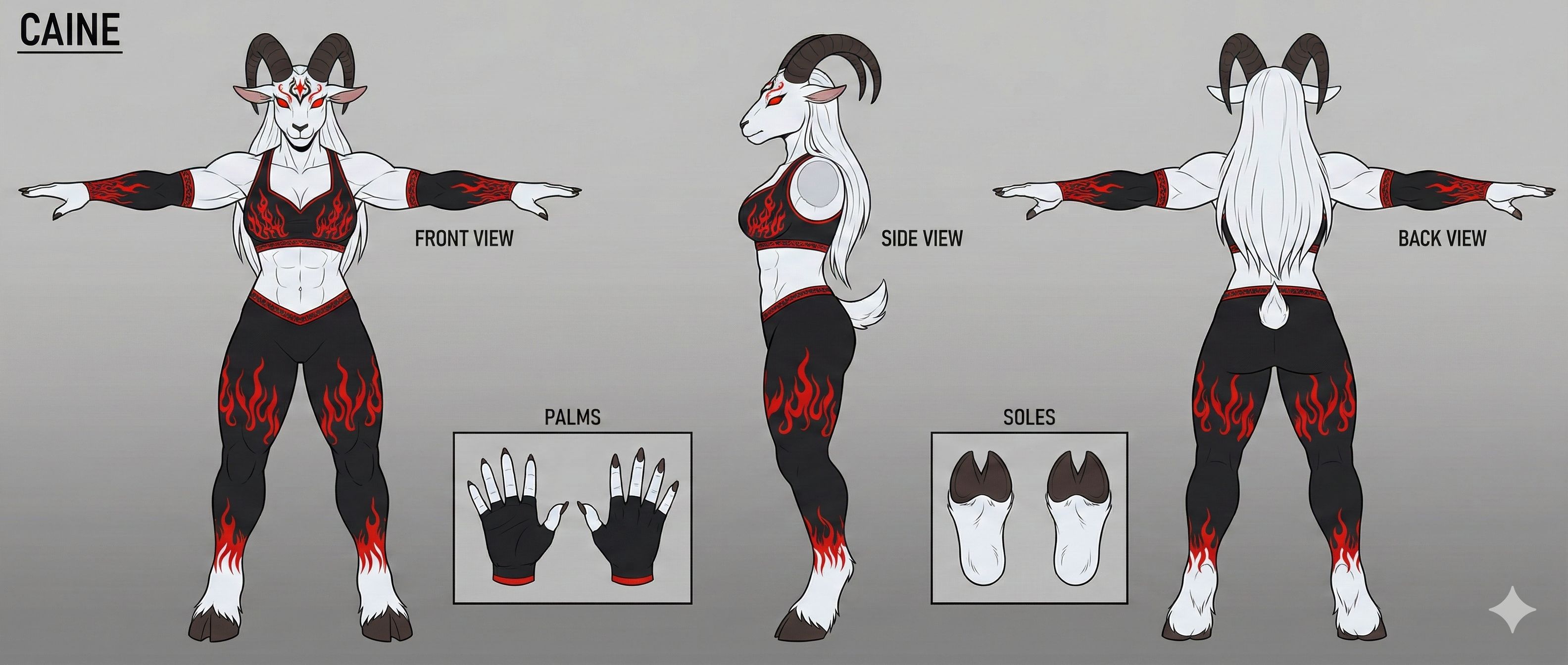 >>82035969First I uploaded an old Bing image to Google Gemini and made a reference sheet with it. This is for keeping character designs consistent.>Make a reference sheet of this female goat character, Caine. Front, side and back view. T-pose. Palm and sole. Change her hair to white.Then I uploaded the reference sheet to Gemini.>cartoon scene. log cabin. night. she lays on bed on her belly. sexy. soles