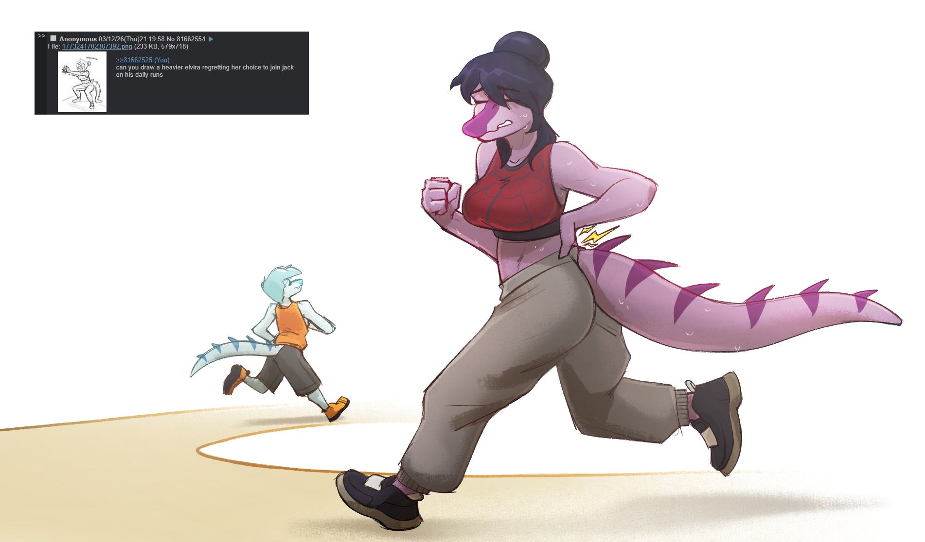 >>82021064>>82021149>>82021190>>82021217Jack will make her in shape, no matter how much she bitches about his regiment which is the same regiment she signed up for last minute.